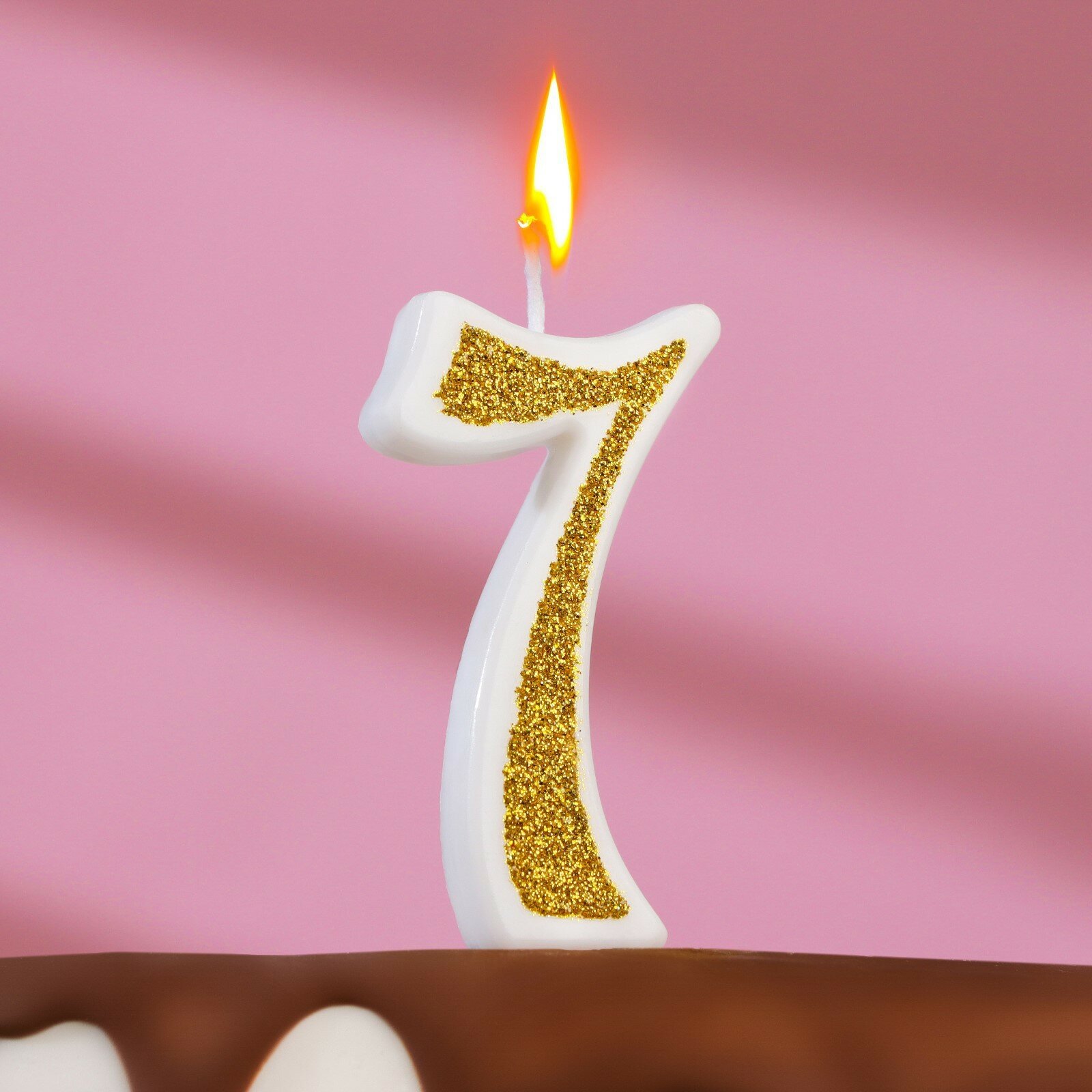 Купить Свеча для торта "Блёстки" цифра 7, золотистая, 5,2 см