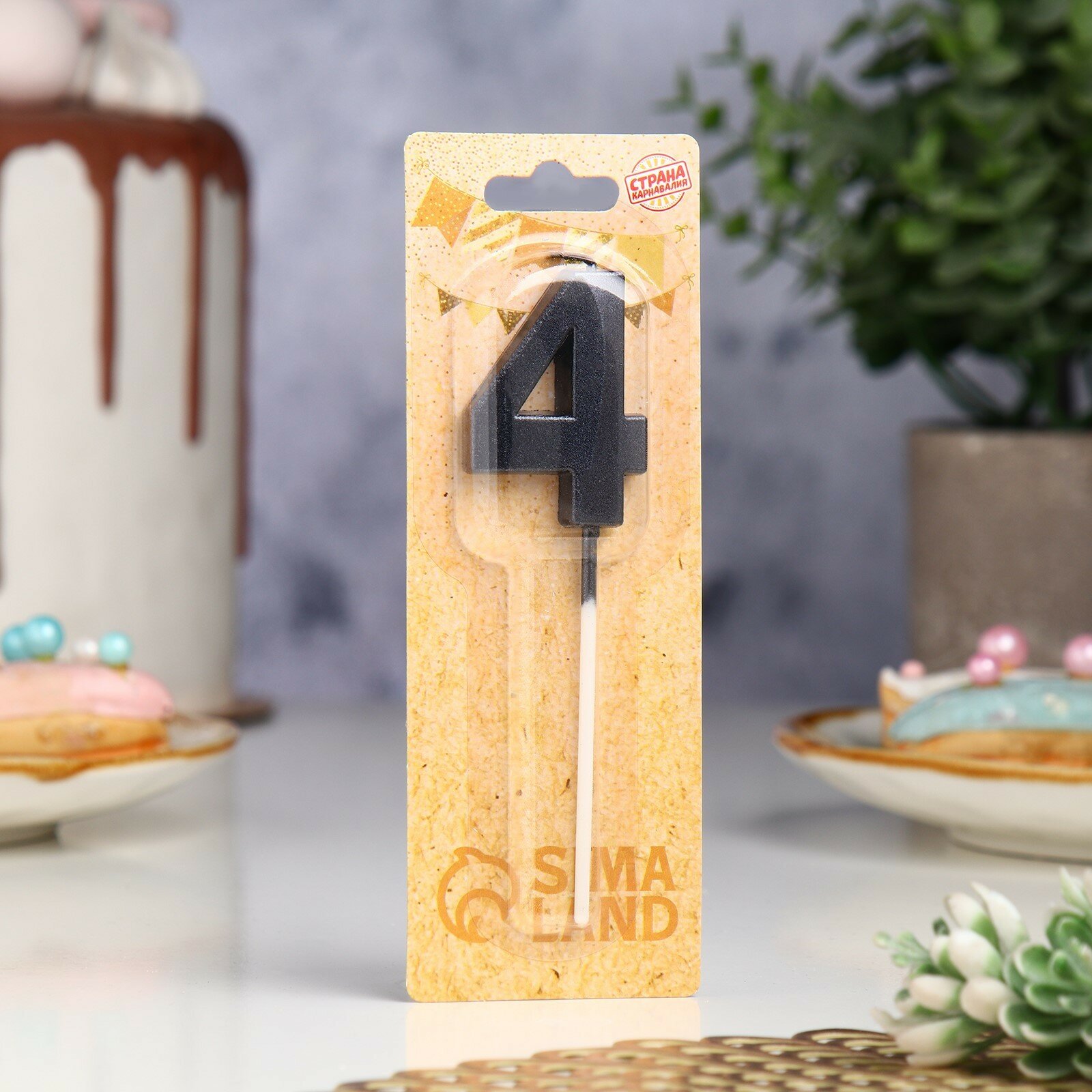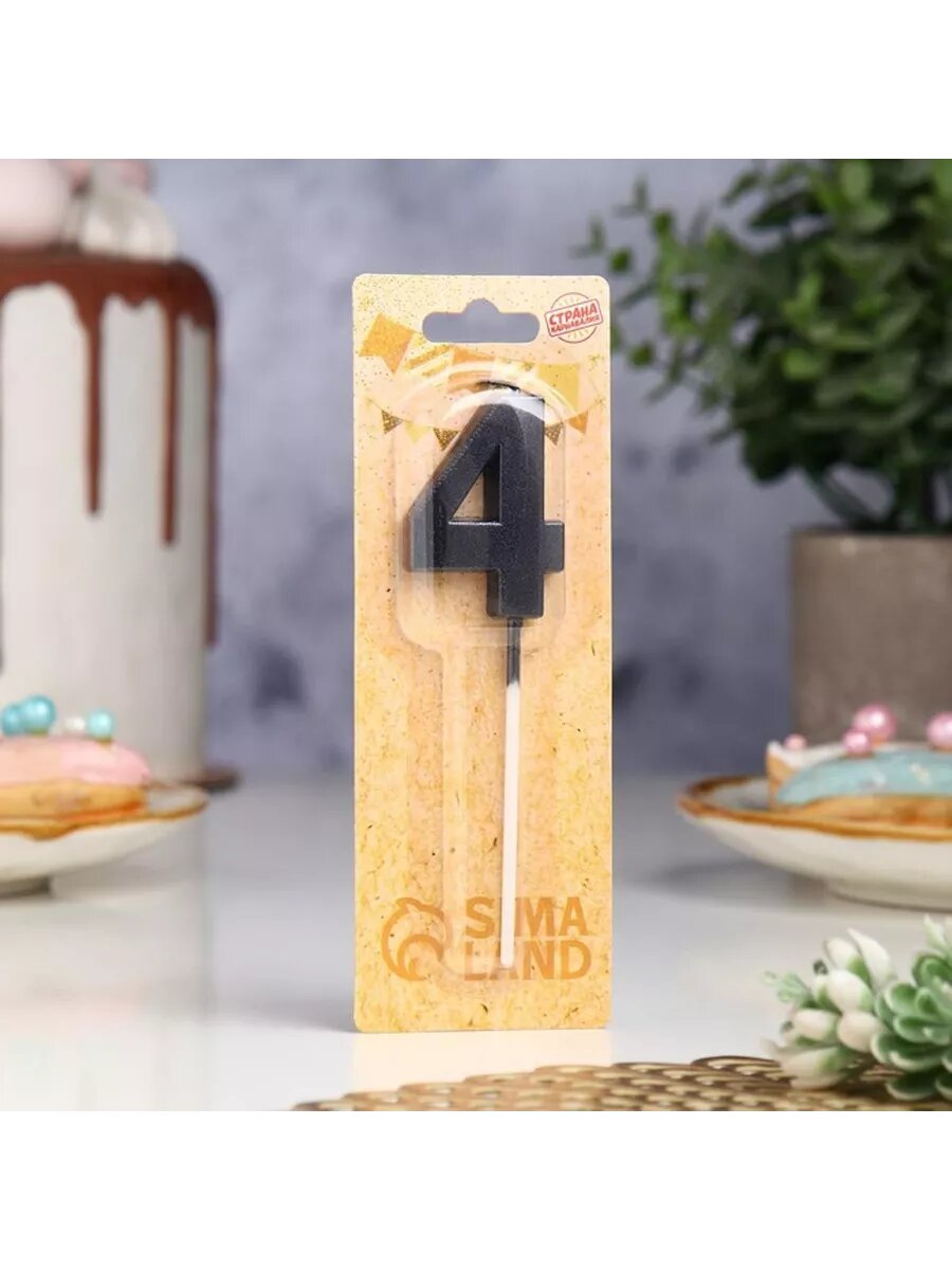 Купить Свеча в торт на шпажке « Грань», цифра "4", черная, 5 см