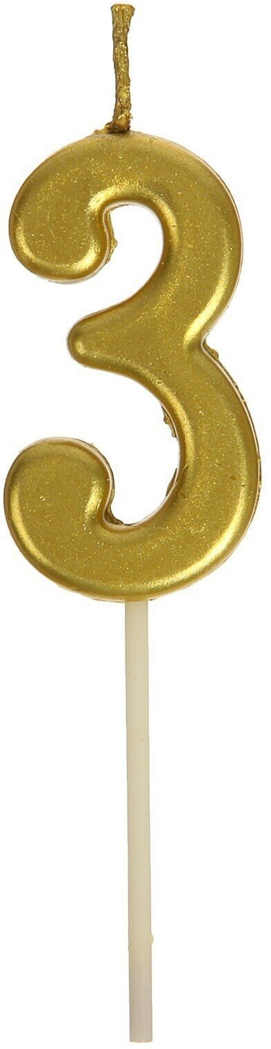 Купить Свеча в торт на шпажке, цифра 3, золотой, 4.5х2.5 см