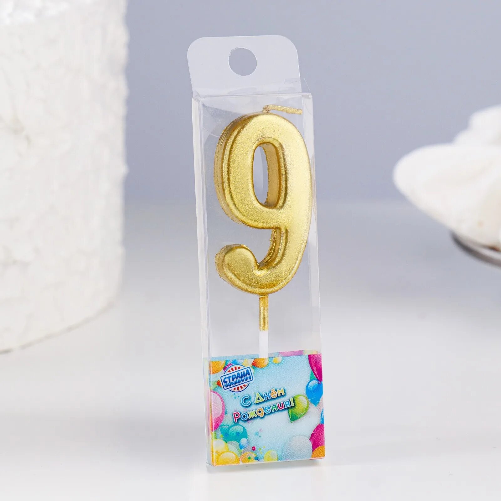 Купить Свеча в торт на шпажке, цифра 9, золотой, 4.5х2.5 см