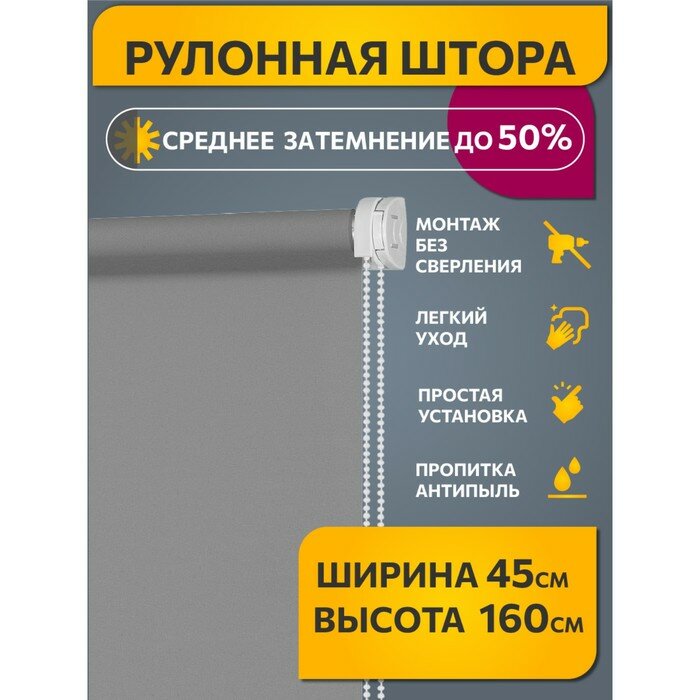 Купить Рулонные шторы однотонные 45 см x 160 см Серый Плайн DECOFEST (Мини)