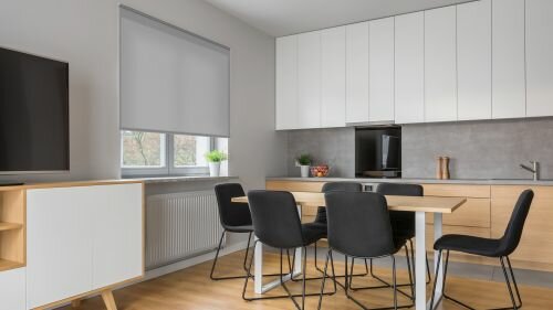 | Плюсы: | Стильная из-за графитового цвета, не пропускает свет (блэкаут) , легко устанавливается, удобная в использовании. |