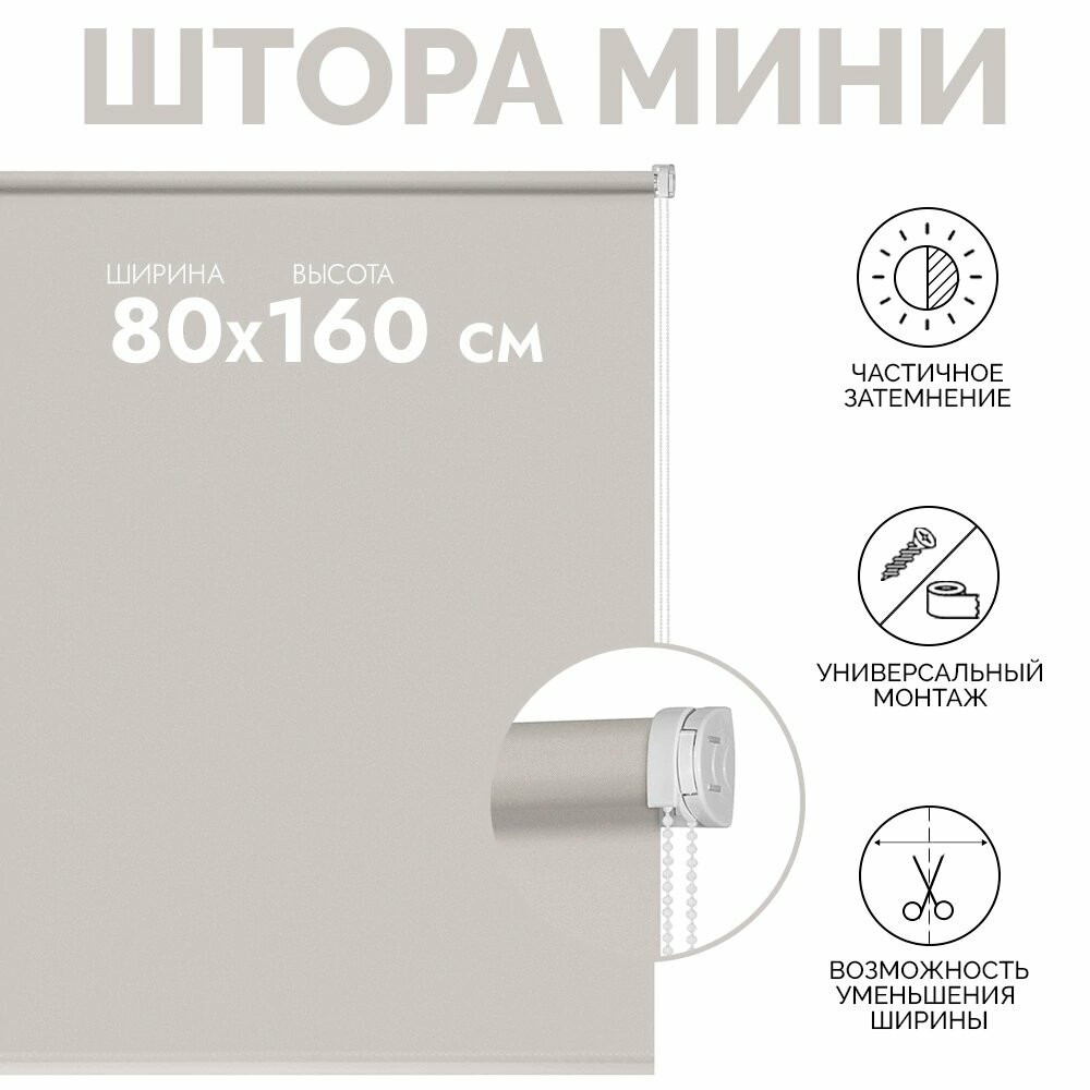 Рулонная штора Decofest Плайн, миниролл, 80 x 160 см, серая
