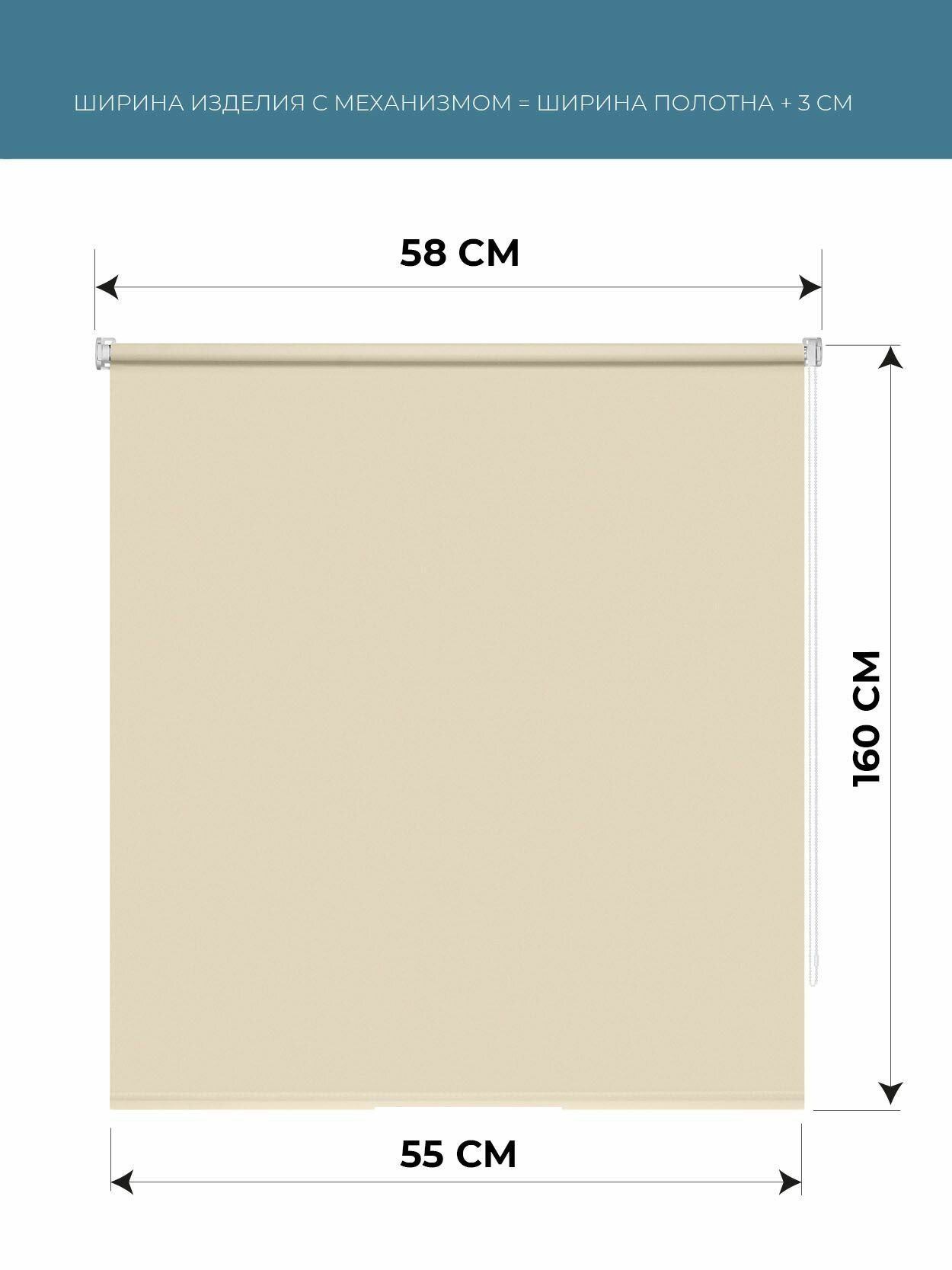 Купить Рулонная штора Decofest "Плайн" Кремово-бежевый 055x160