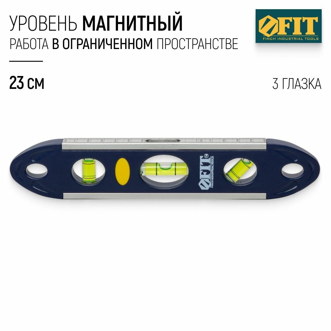 FIT Уровень строительный магнитный 20 см 3 глазка с угломером для работы в ограниченном пространстве
