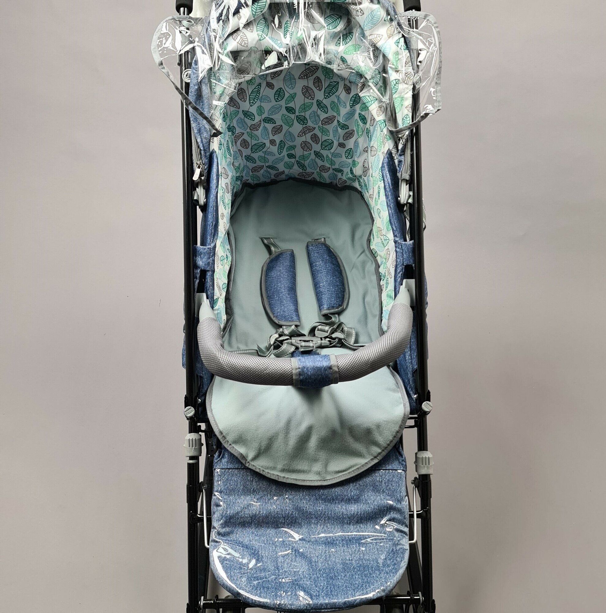 | Плюсы: | Глубокий и плотный капор, закрывает обзор полностью, поэтому даже наличие дождевика на нем не обязательно(но он есть ) , в нем также имеется смотровое окошко. Полностью лежачее положение . Накидка на ножки на молнии, внутри непромокаемая.