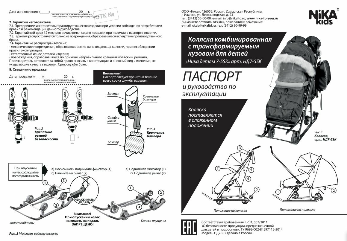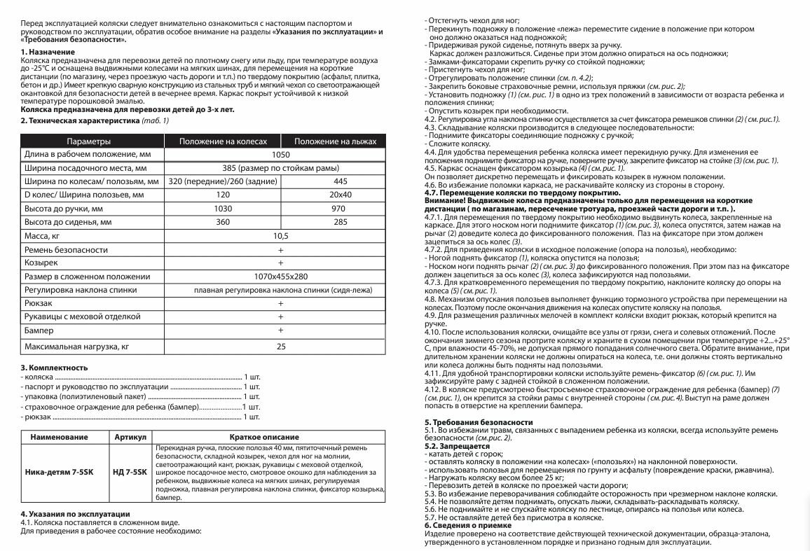 Санки коляска комбинированная Ника детям 7-5SК / Детские санки Nika / Детские санки коляска Ника