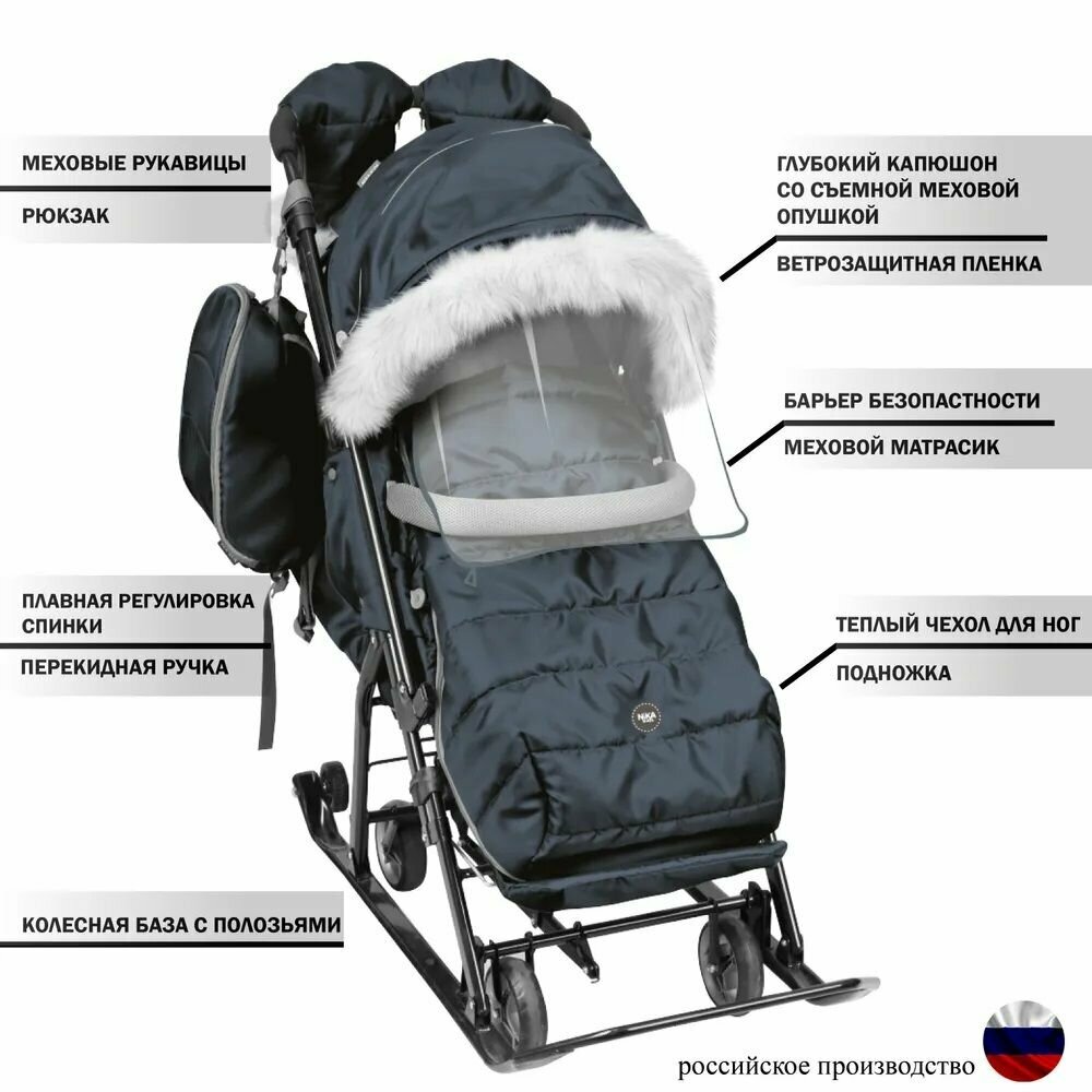 Санки-коляска Nika "Ника Детям" НД7-5SK, с колесами, для детей от 6 месяцев, темно-синяя