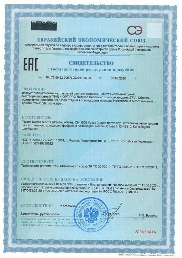 | Производитель | NAN (Nestlé) |