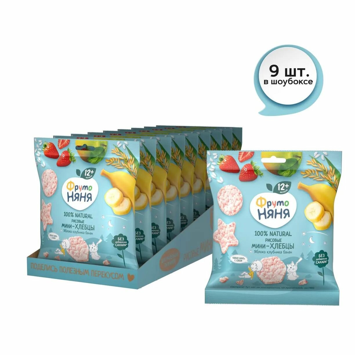 Купить Хлебцы ФрутоНяня рисовые яблоко-клубника-банан с 12 месяцев 30 г 9 шт