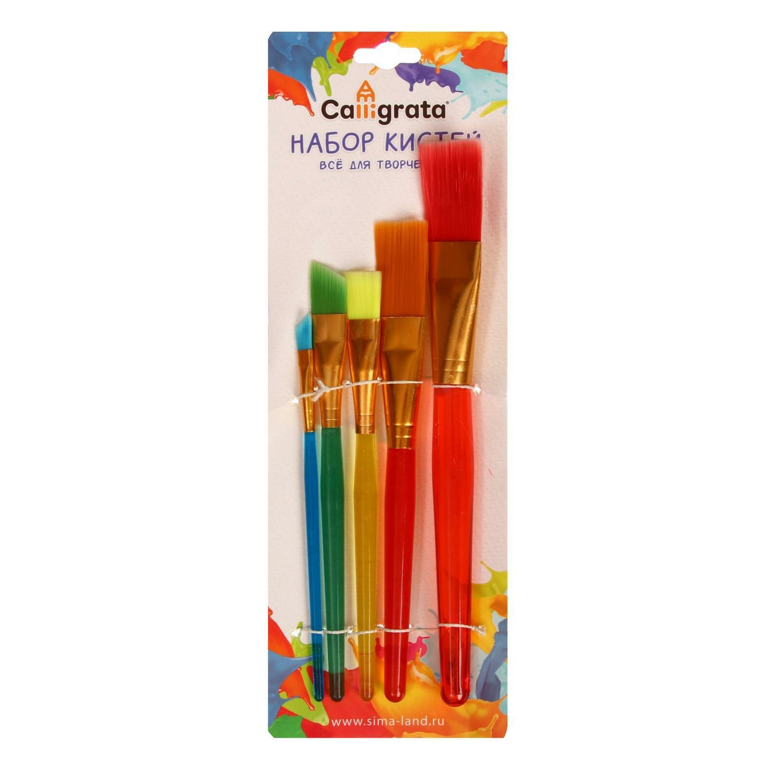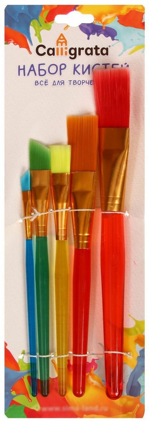 Набор кистей Calligrata нейлон, 5 штук "Радуга", плоские, большие