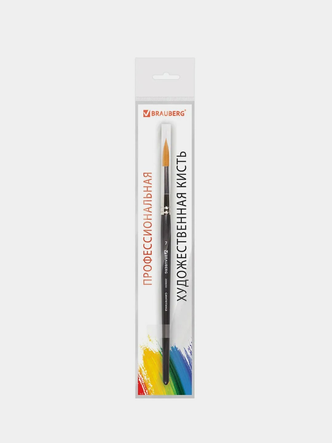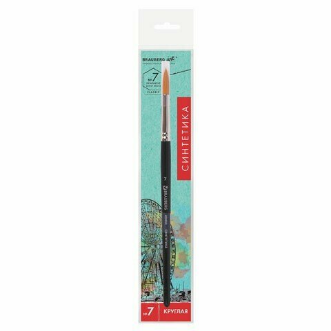 Кисть художественная проф. BRAUBERG ART CLASSIC, синтетика жесткая, круглая, № 7, короткая ручка, 200650, 200650