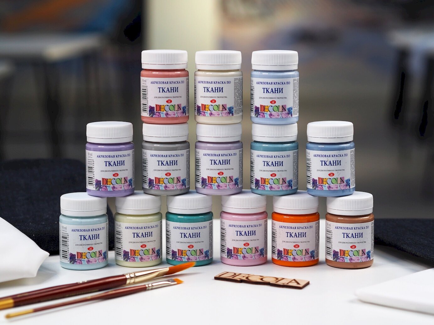 Краска по ткани, банка 50 мл, ЗХК Decola, Телесная 4128235, (акриловая на водной основе)