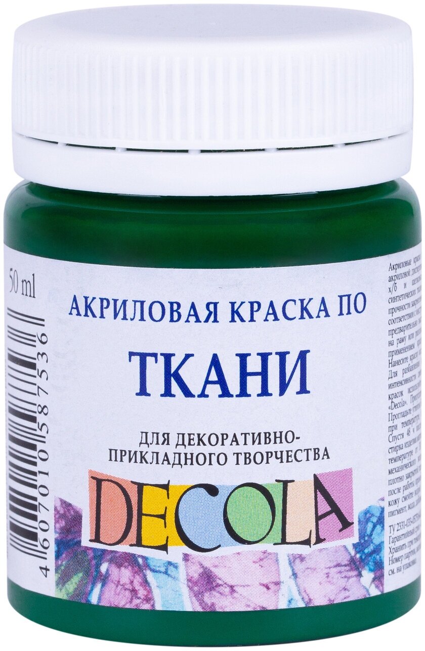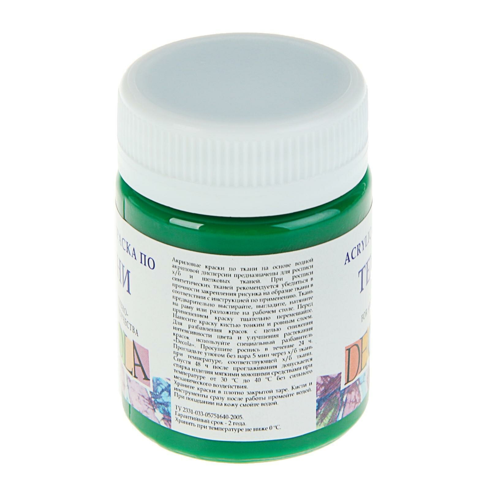 Краска акриловая по ткани Невская палитра DECOLA, 50 мл, зеленая средняя