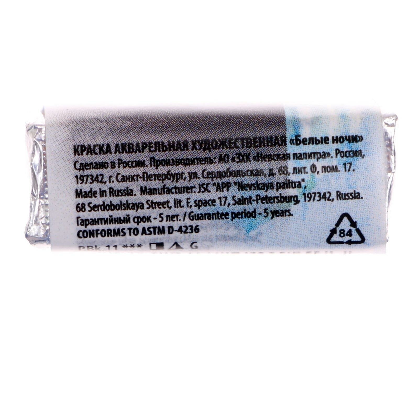 Акварель художественная «Белые ночи», 2.5 мл, белила цинковые, в кюветеВ наборе1шт