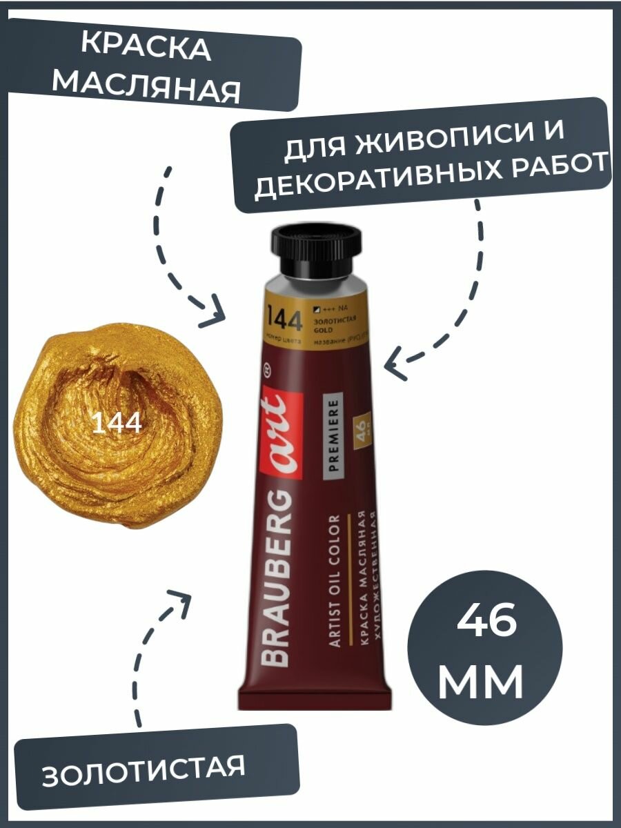 Краска масляная художественная BRAUBERG ART PREMIERE, 46 мл, проф. серия, охра золотистая, 191438