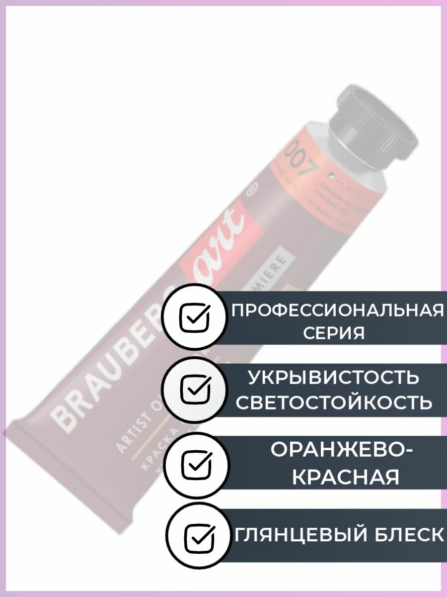 Краска масляная художественная BRAUBERG ART PREMIERE, 46 мл, проф. серия, оранжево-красная, 191405