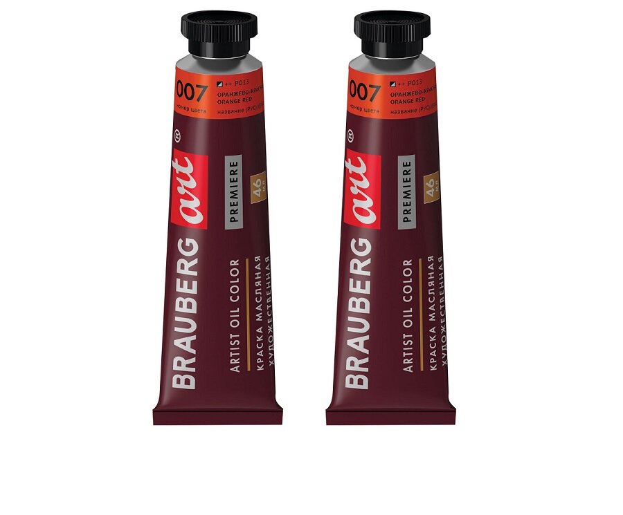 Краска масляная художественная BRAUBERG ART PREMIERE, 46 мл, проф. серия, пурпурная красная, 191411, 2 штуки