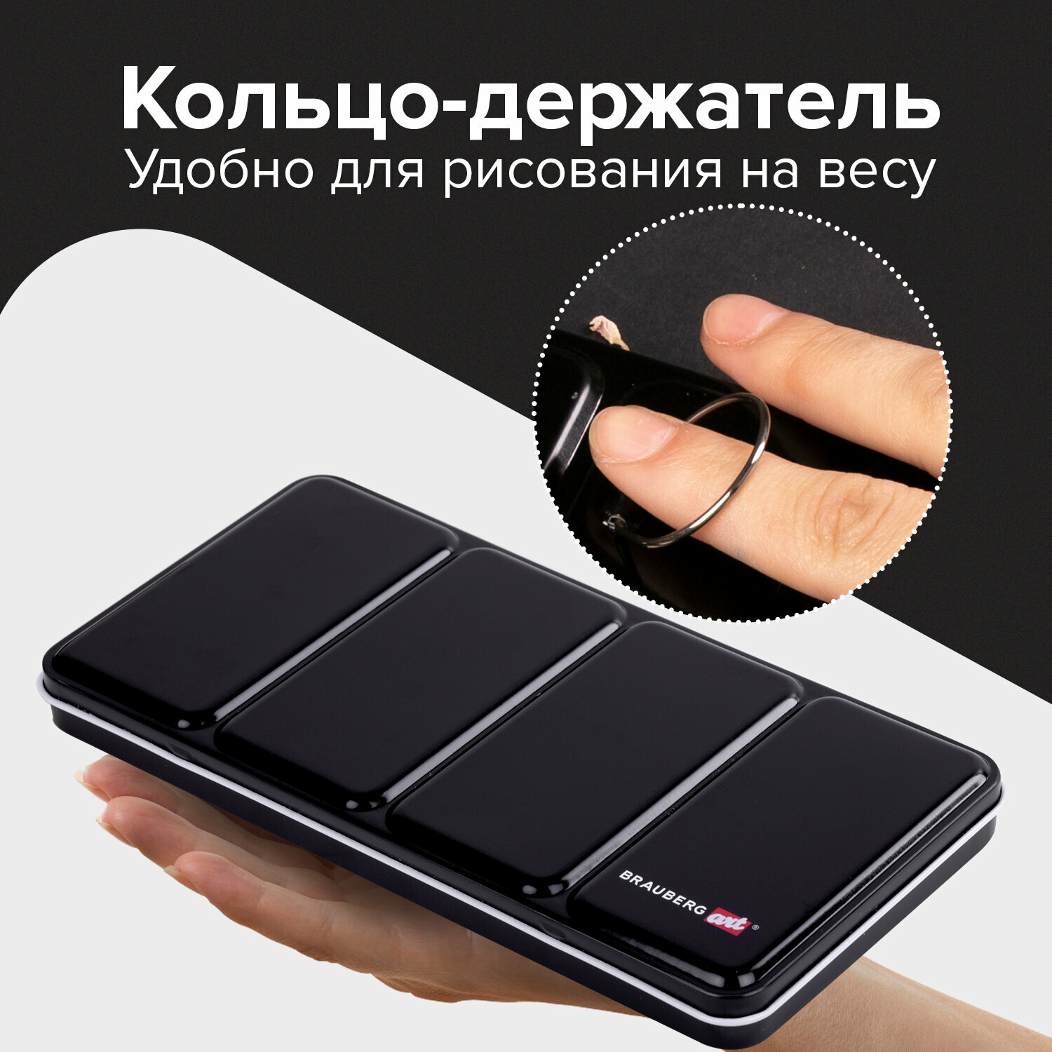Brauberg Акварель художественная кюветы набор 24 цвета по 3,5 г, металлический кейс 191773