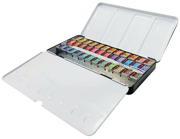 Акварель художественная кюветы набор 24 цвета по 3.5 г, металлический кейс, BRAUBERG ART PREMIERE