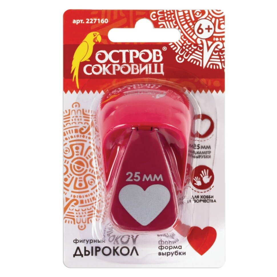 Дырокол фигурный "Сердце", диаметр вырезной фигуры 25 мм, остров сокровищ, 227160, 1 шт