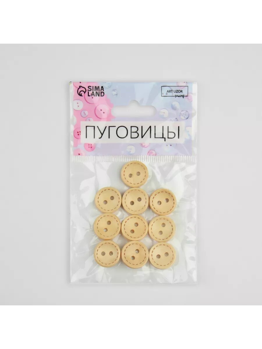 Купить Деревянные пуговицы для рукоделия , 2 прокола, d - 15 х 3 мм, 10 шт