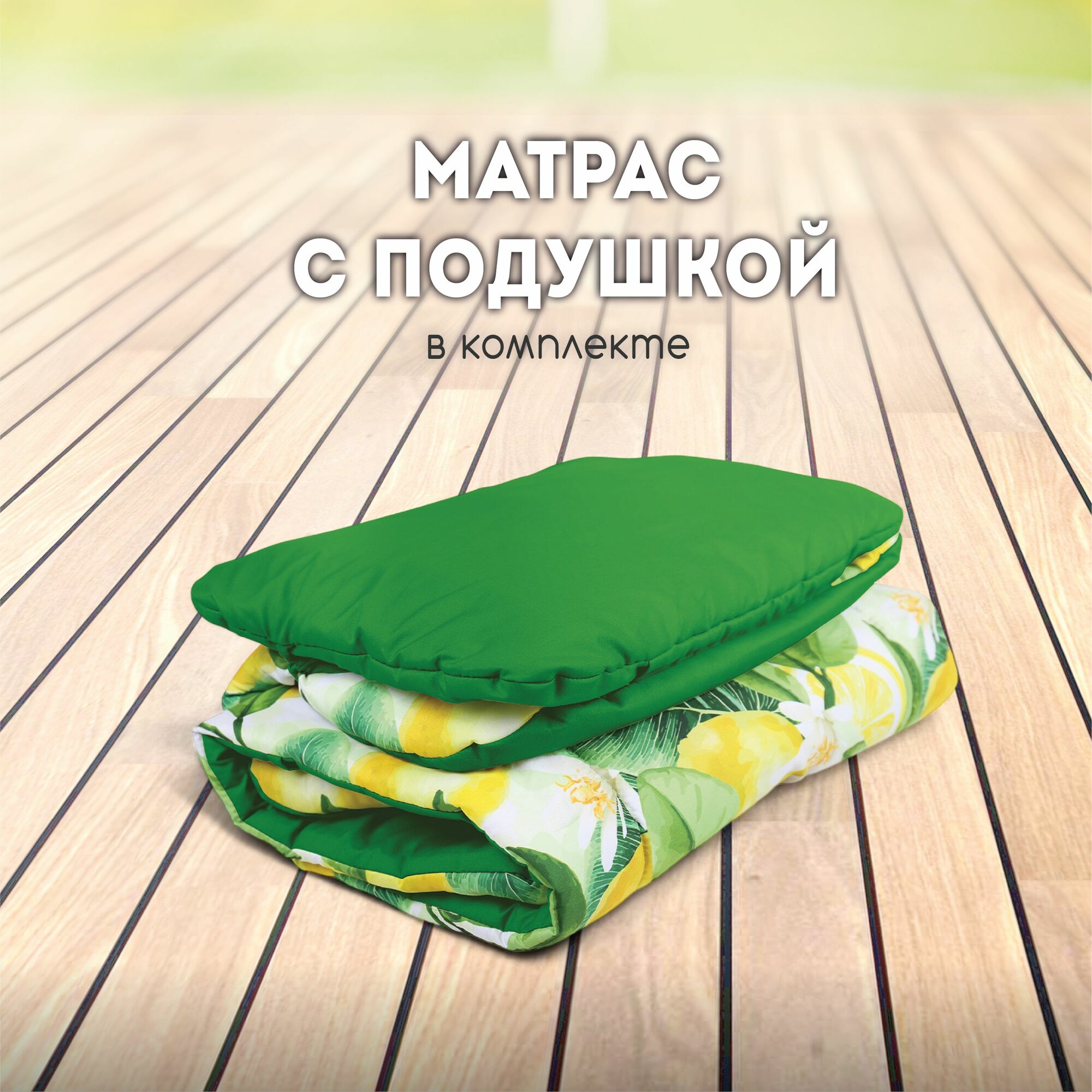 Шезлонг для дачи с матрасом и подушкой (ННК5/F принт с фламинго)
