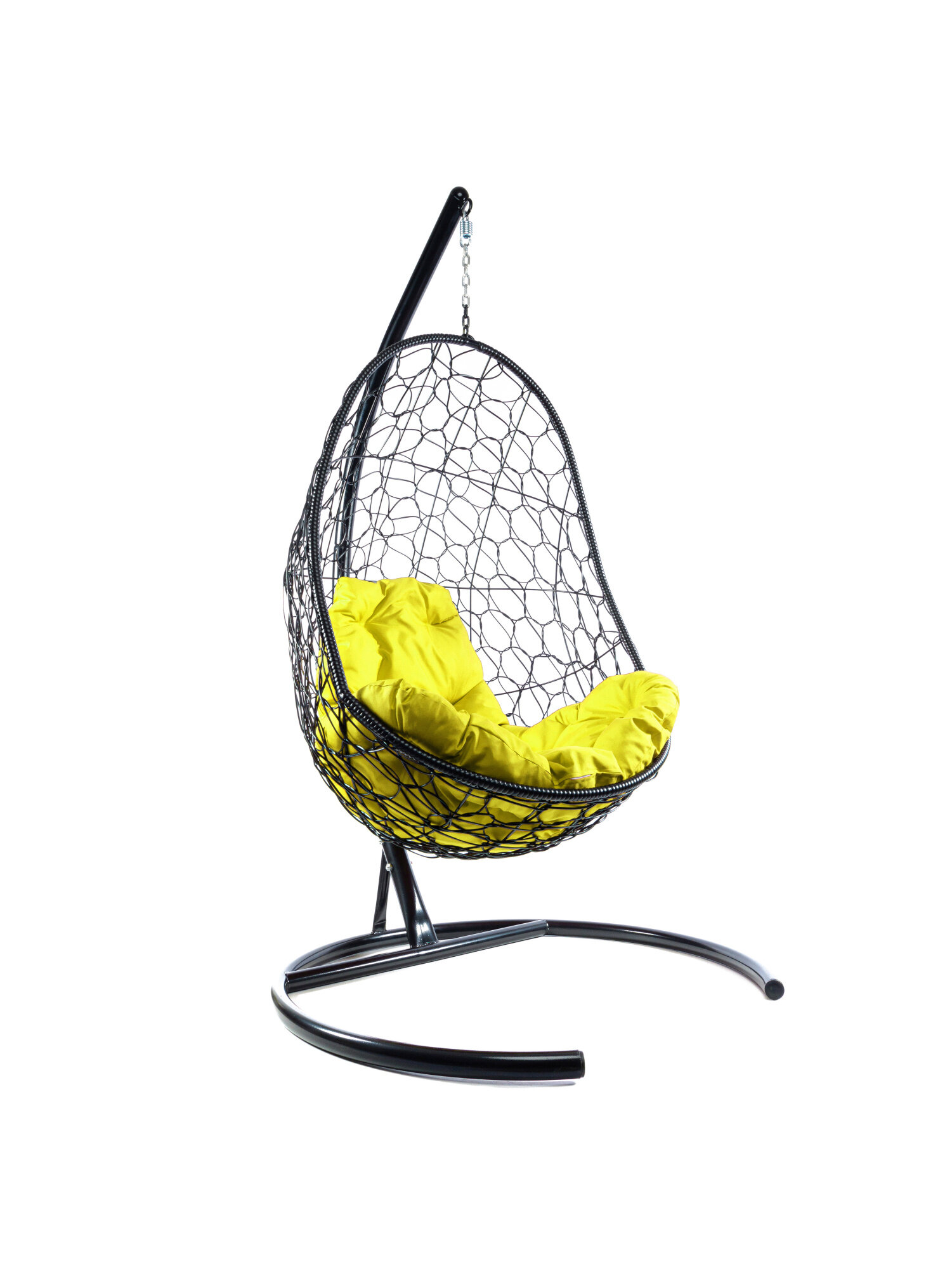 Купить Подвесное кресло с ротангом "Овал" черное с желтой подушкой 830х700х1190 M-Group