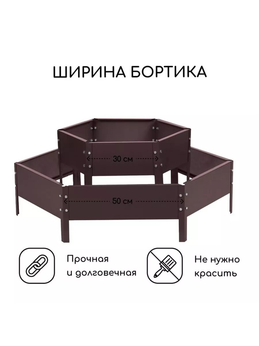 Купить Клумба оцинкованная, 2 яруса, d = 60-100 см, высота бортика 30 см, коричневая