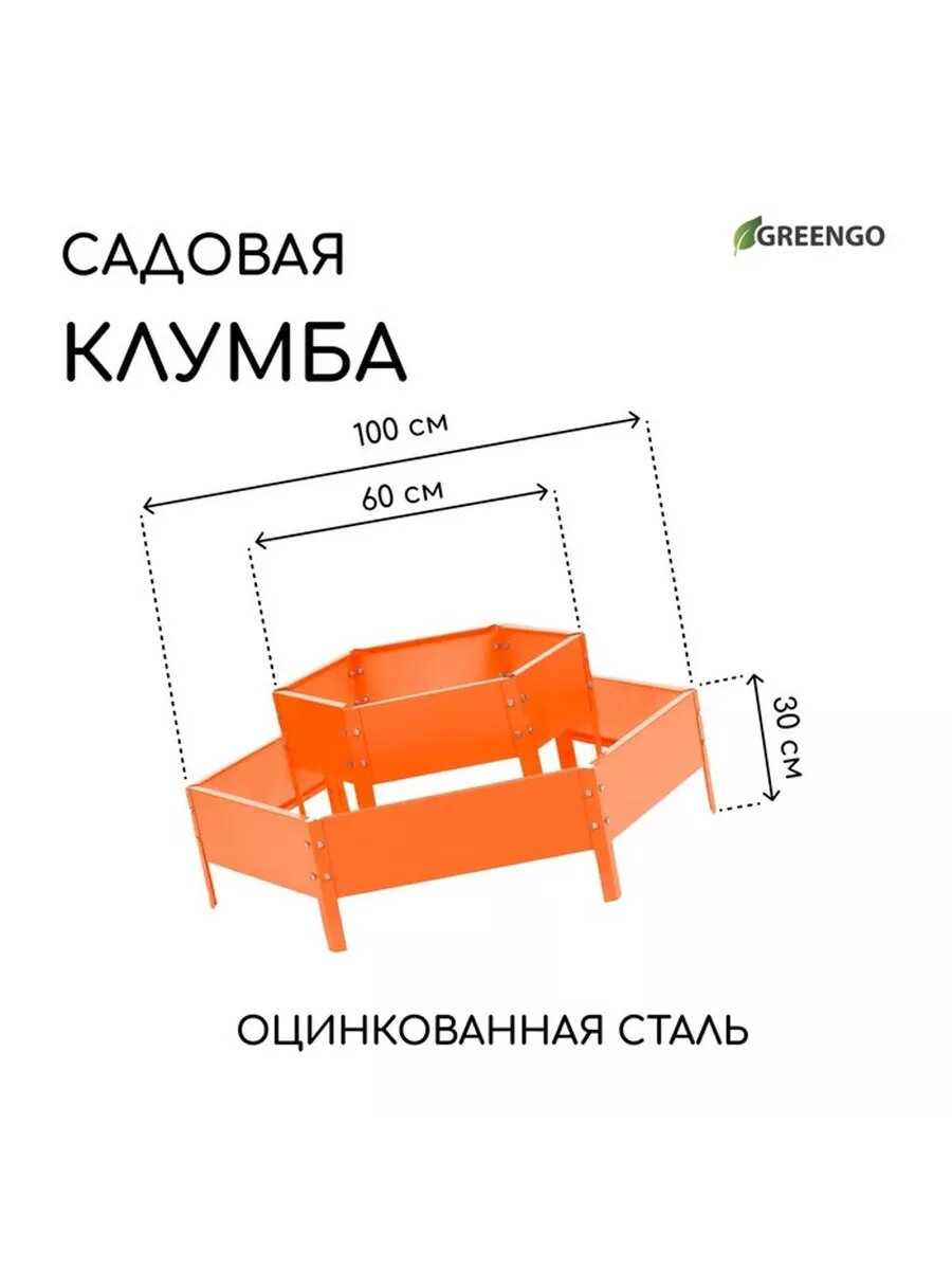 Клумба оцинкованная, 2 яруса, d 60 100 см, h 30 см, оранжевая, Greengo