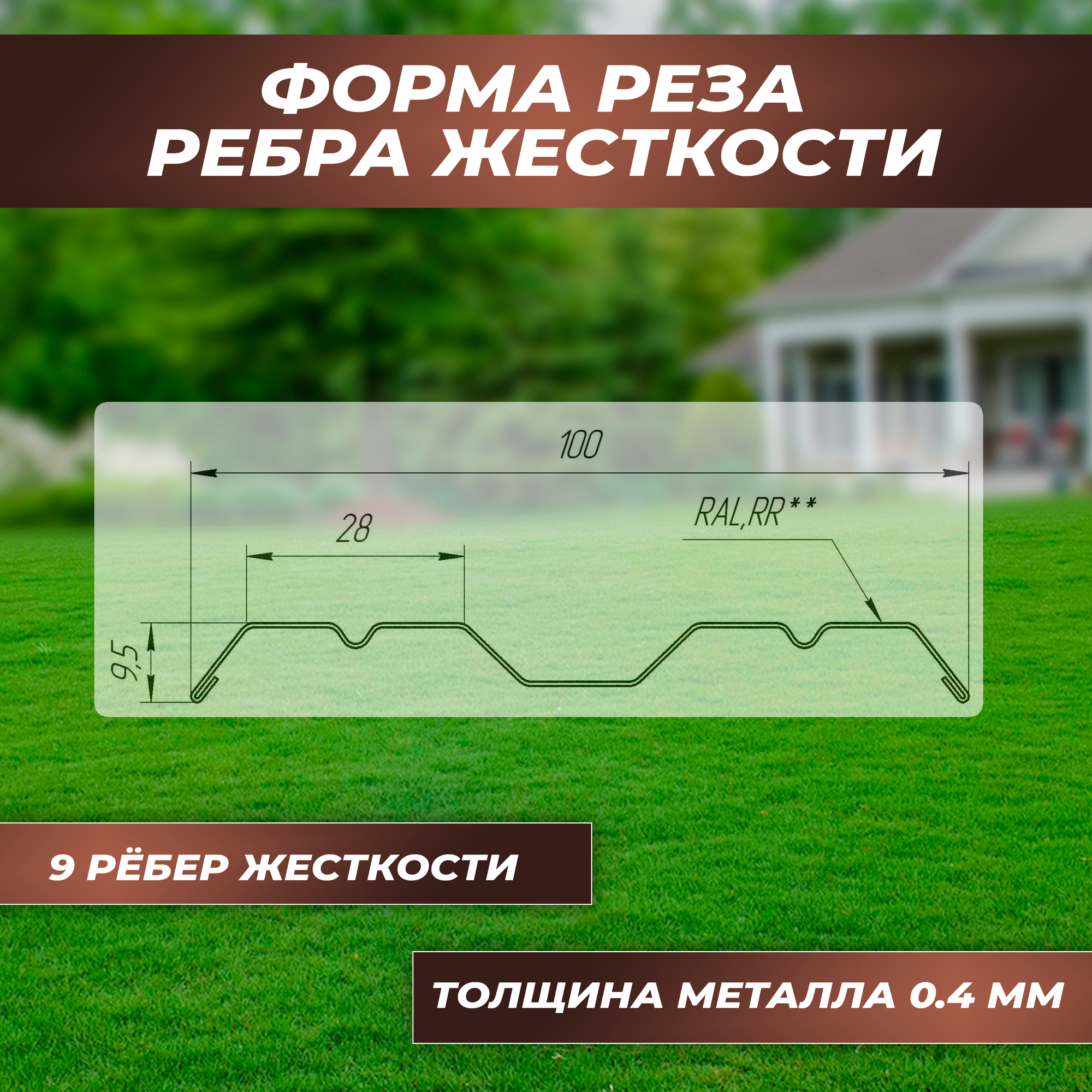 Штакетник металлический Классик (двусторонний окрас, цвет шоколадно-коричневый, высота 1.1 м, ширина планки 100 мм, 20 шт., саморезы в комплекте)