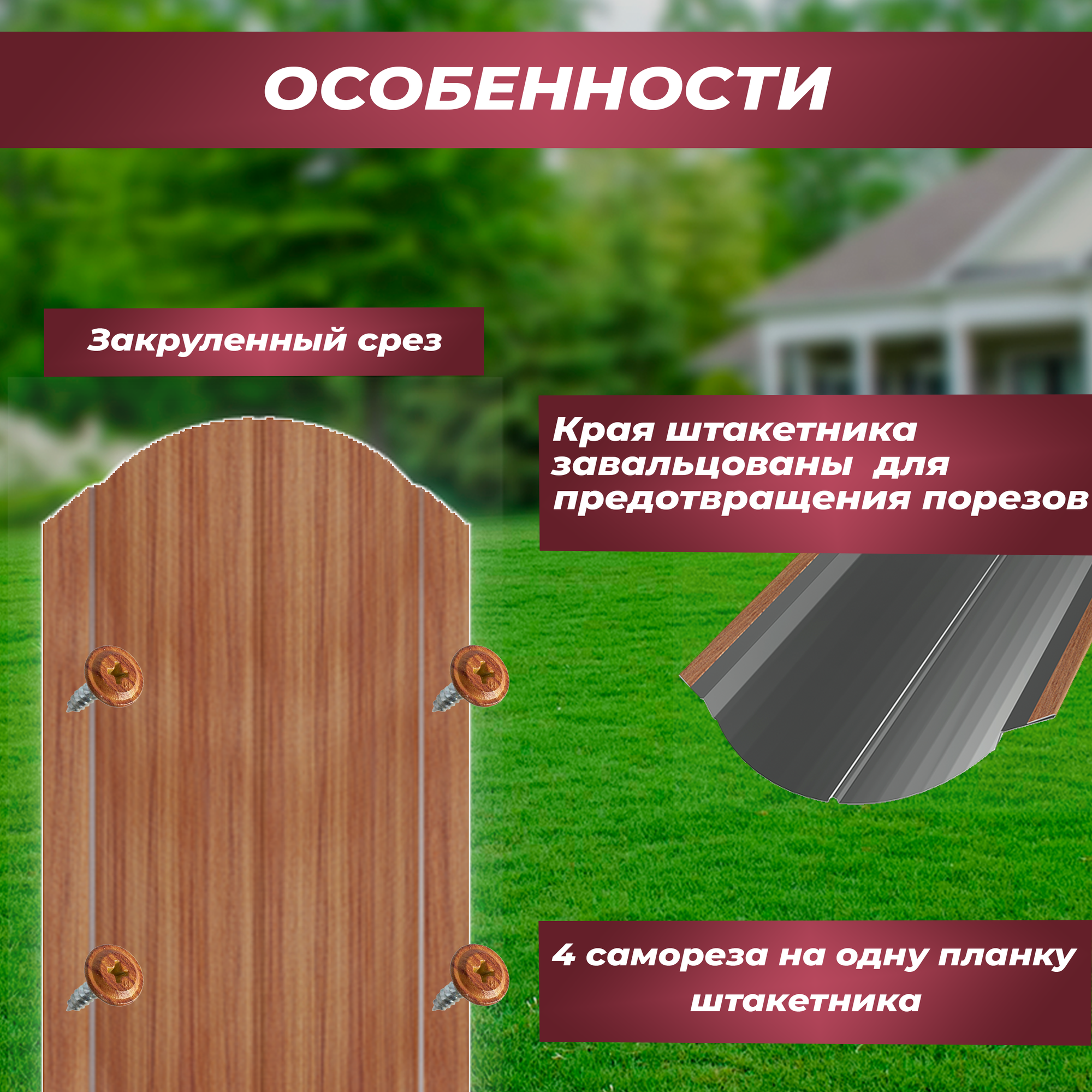 Штакетник металлический Волна (односторонний окрас Принтек - Золотой Орех, высота 1.5 м, ширина планки 9 см, 20 шт., саморезы в комплекте)