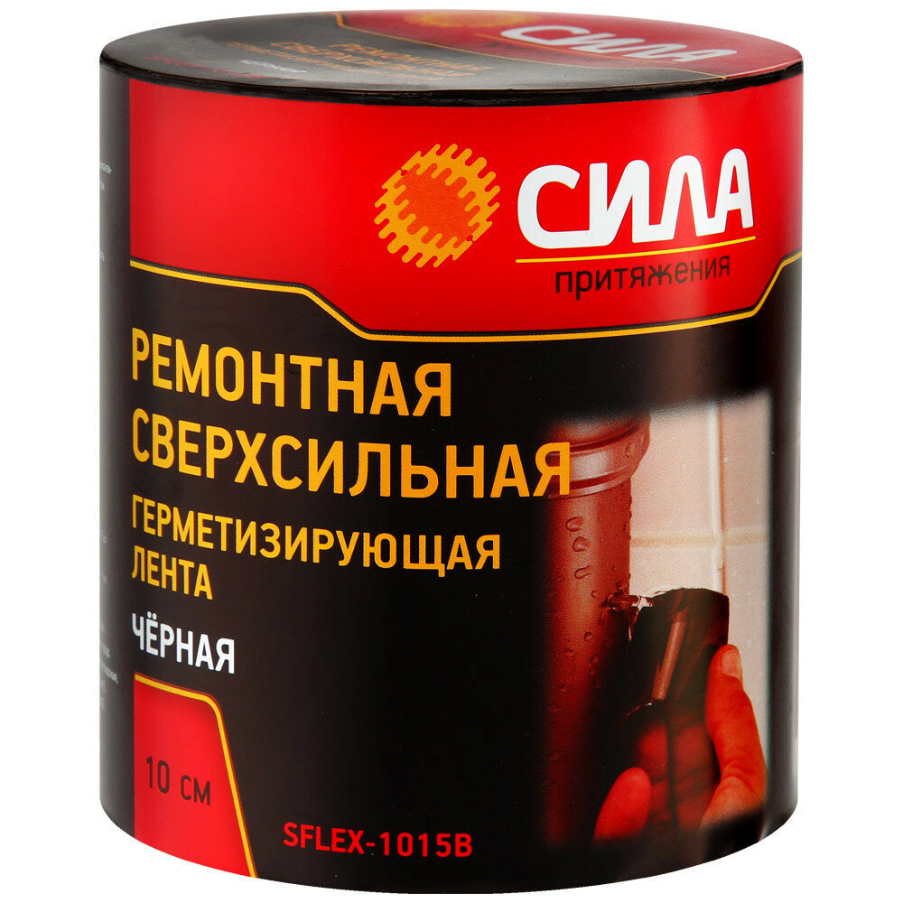 Герметизирующая лента Сила Sflex-1015b ремонтная сверхсильная 10 см х 1,5 м черная Сила 9692355 .