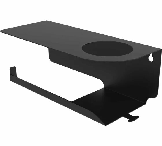 Держатель для туалетной бумаги с полочкой для мобильного телефона и отверстием под освежитель воздуха РЭМО LIRIA RL1001В (черная, левая)