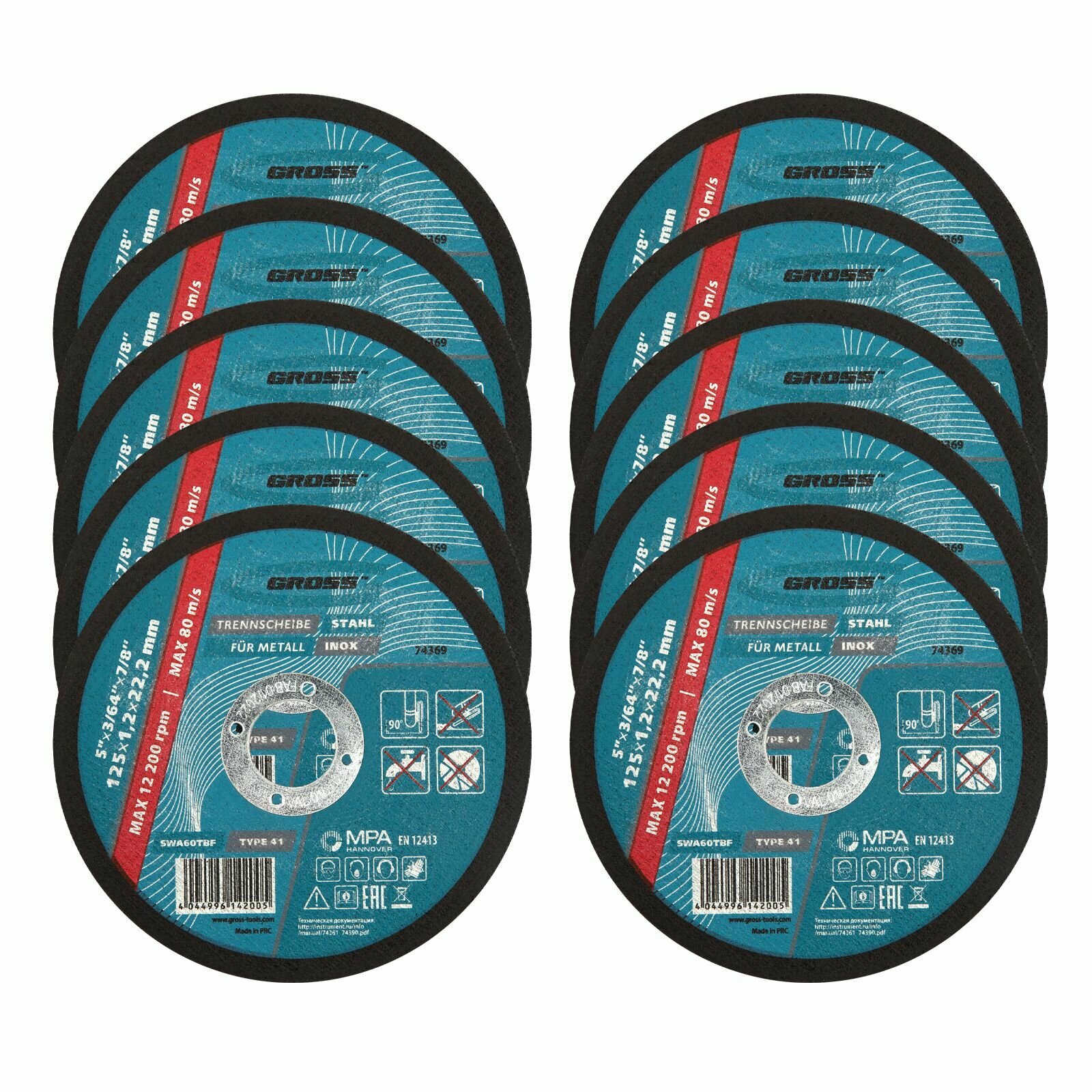 Комплект 8 штук, Диск отрезной по металлу GROSS, d125x1.2x22.2мм, SWA60TBF (74369)