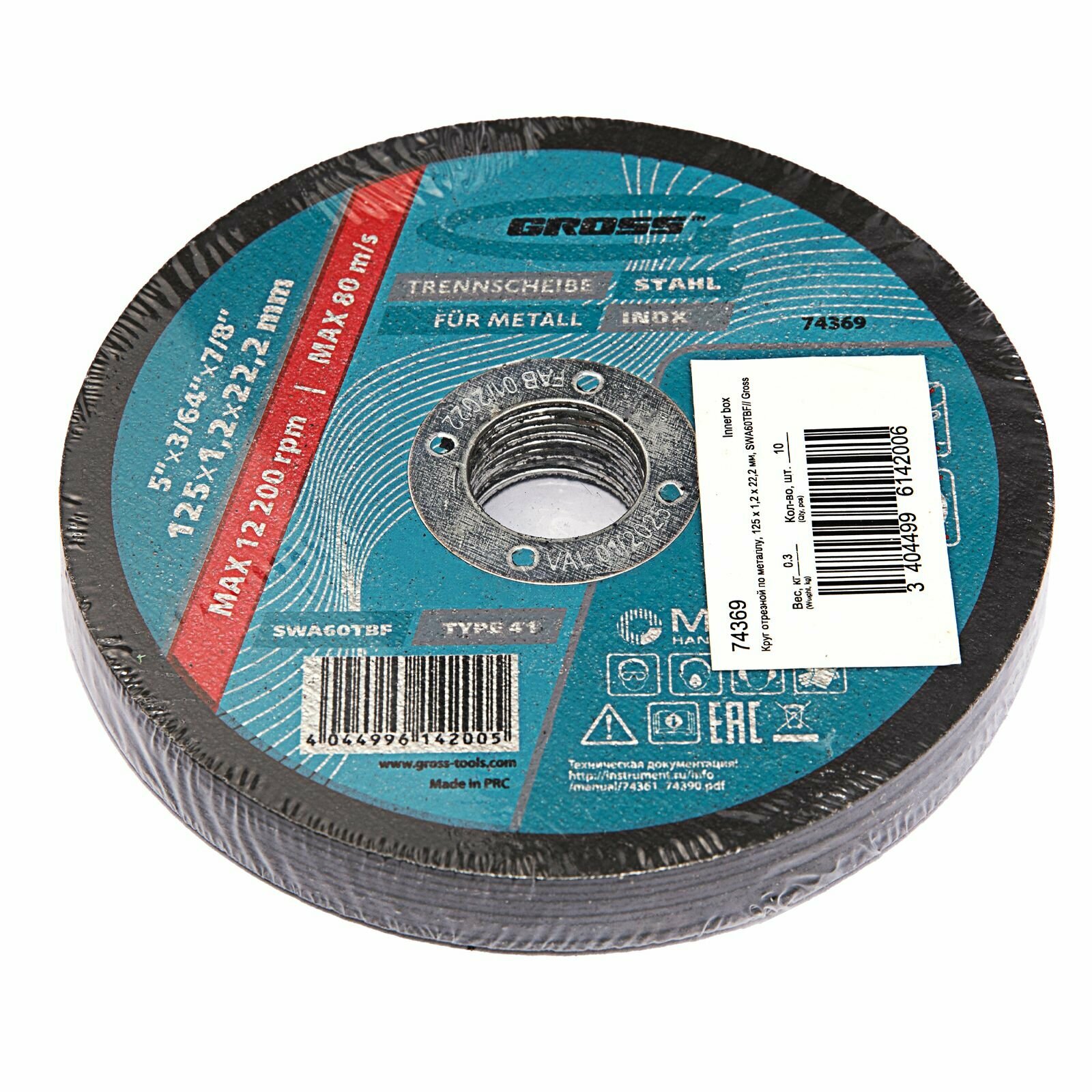 Диск отрезной, 125 x 1.2 x 22 мм, абразивный, металл Gross GROSS 74369