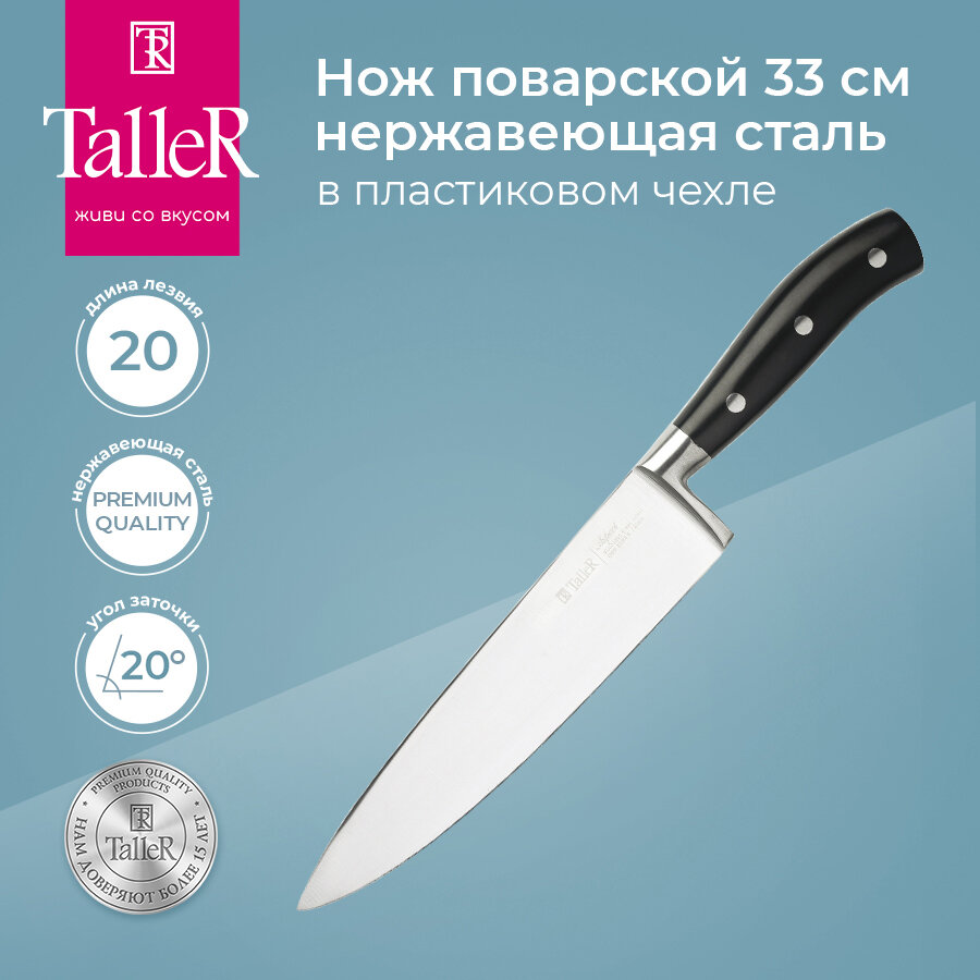 TALLER Нож поварской Длина лезвия 20 см.Нержавеющая сталь 420S45, ударопрочный пластик TR-22101