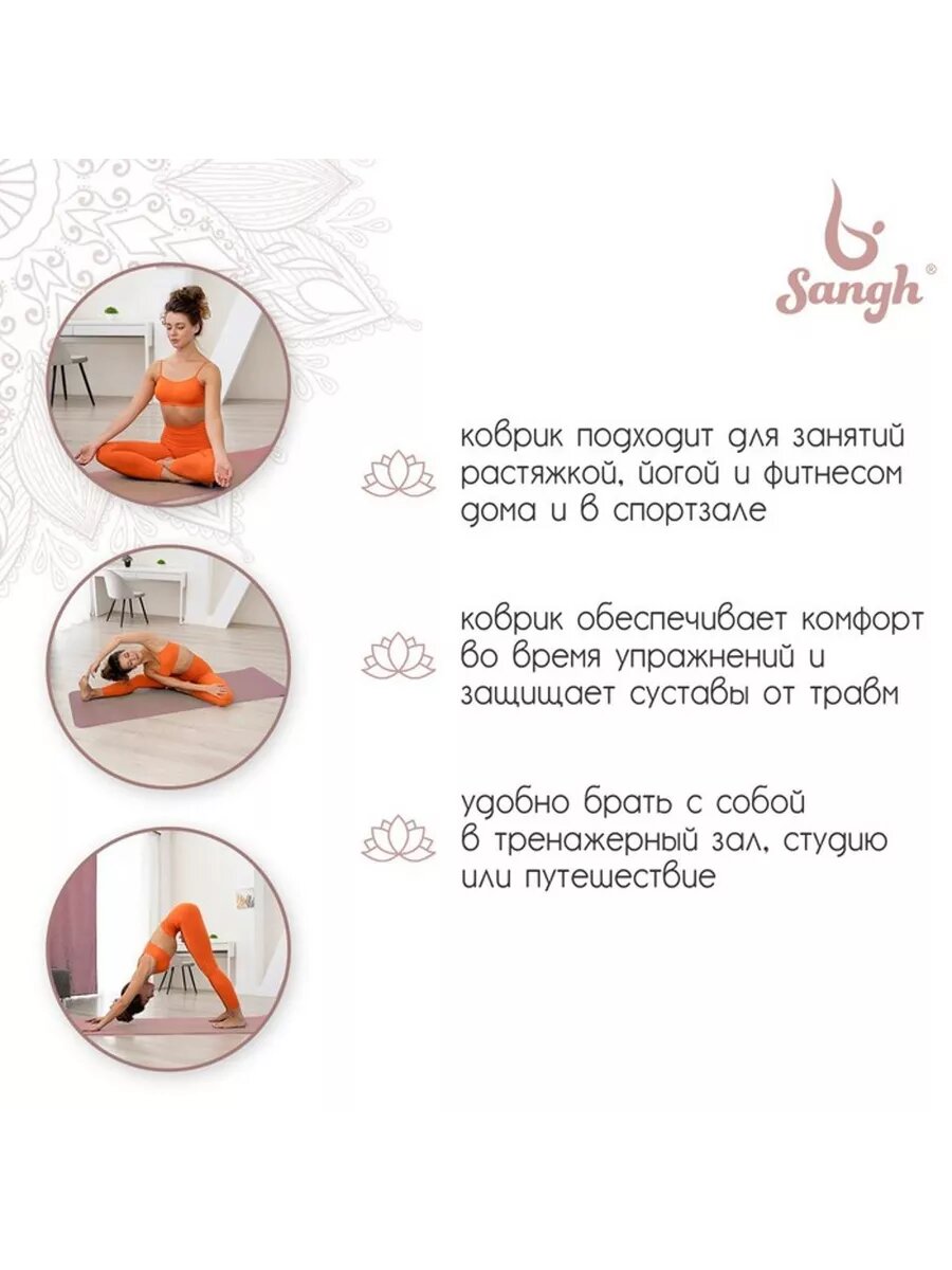 Коврик для йоги Sangh, нескользящий, 183×61×0.6 см, цвет сиреневый
