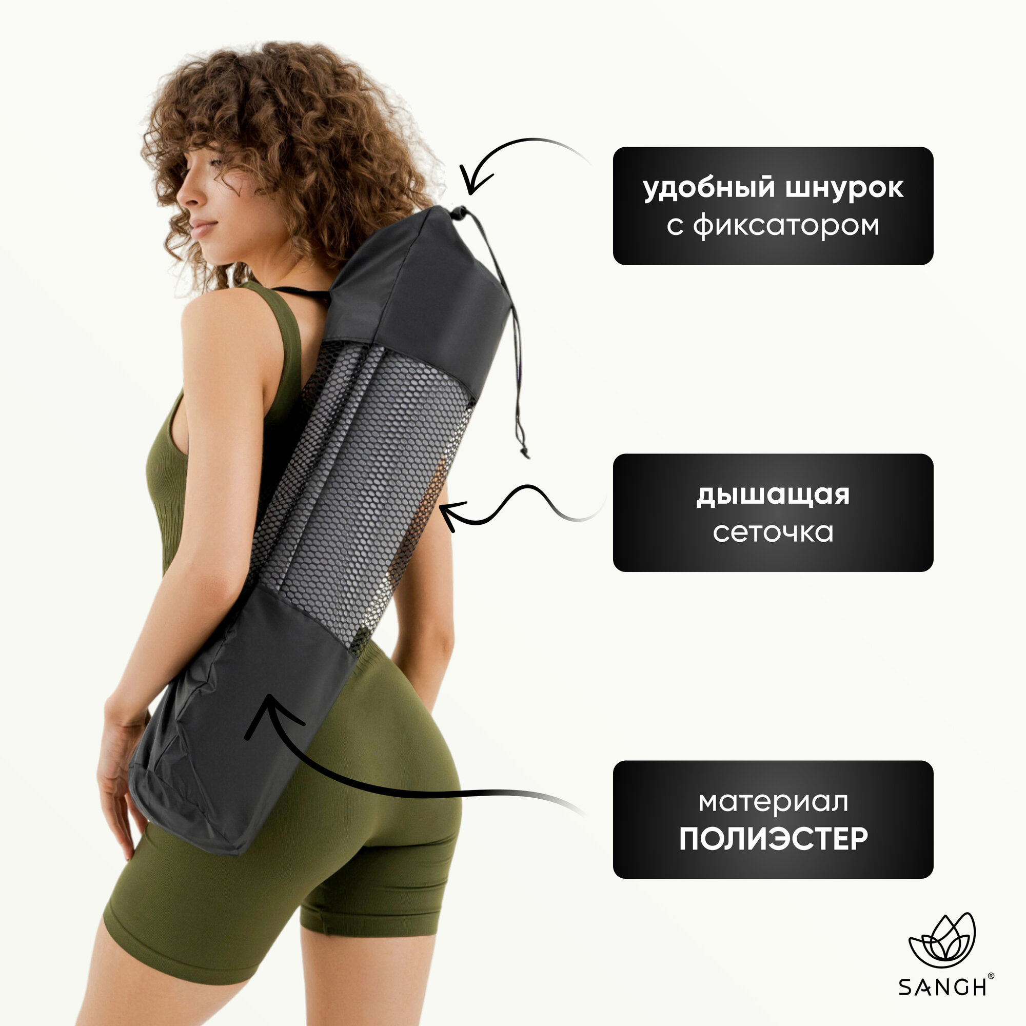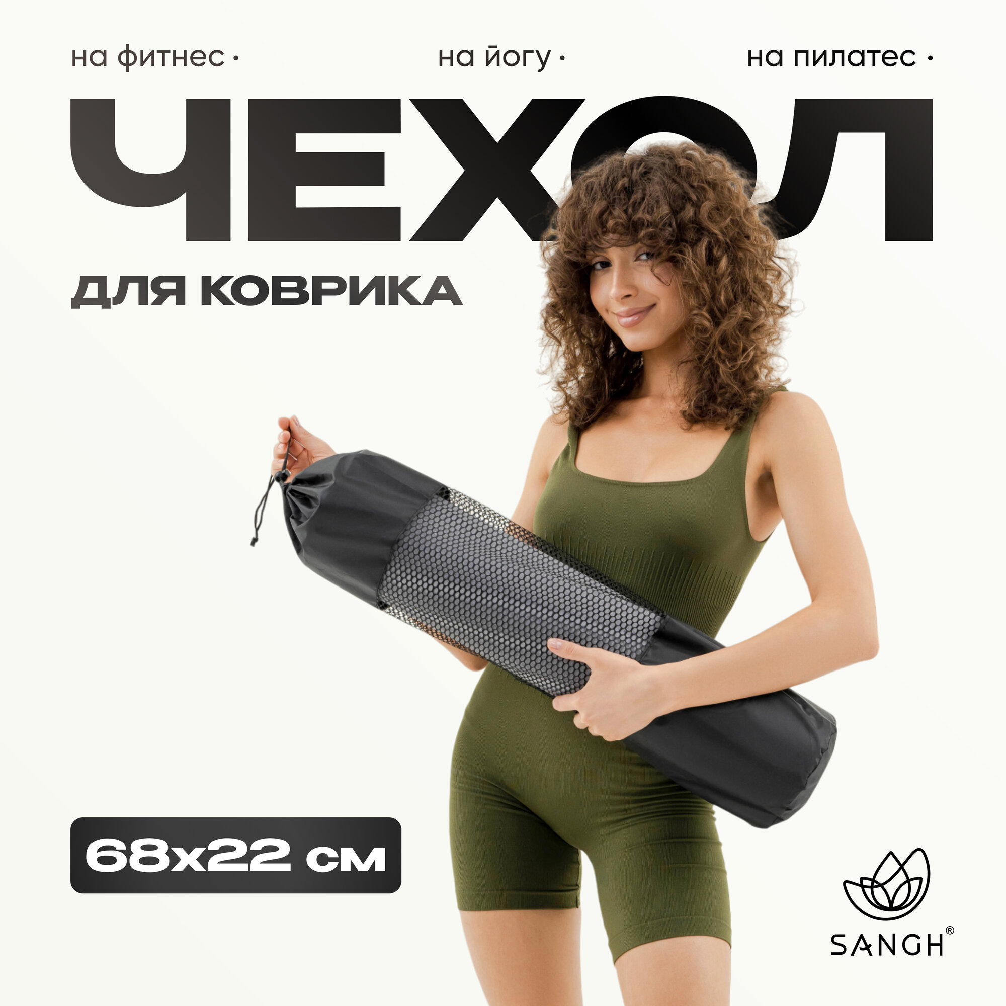 Чехол для йога-коврика Sangh, размеры 68 × 22 см (для толщины до 6 мм), цвет чёрный