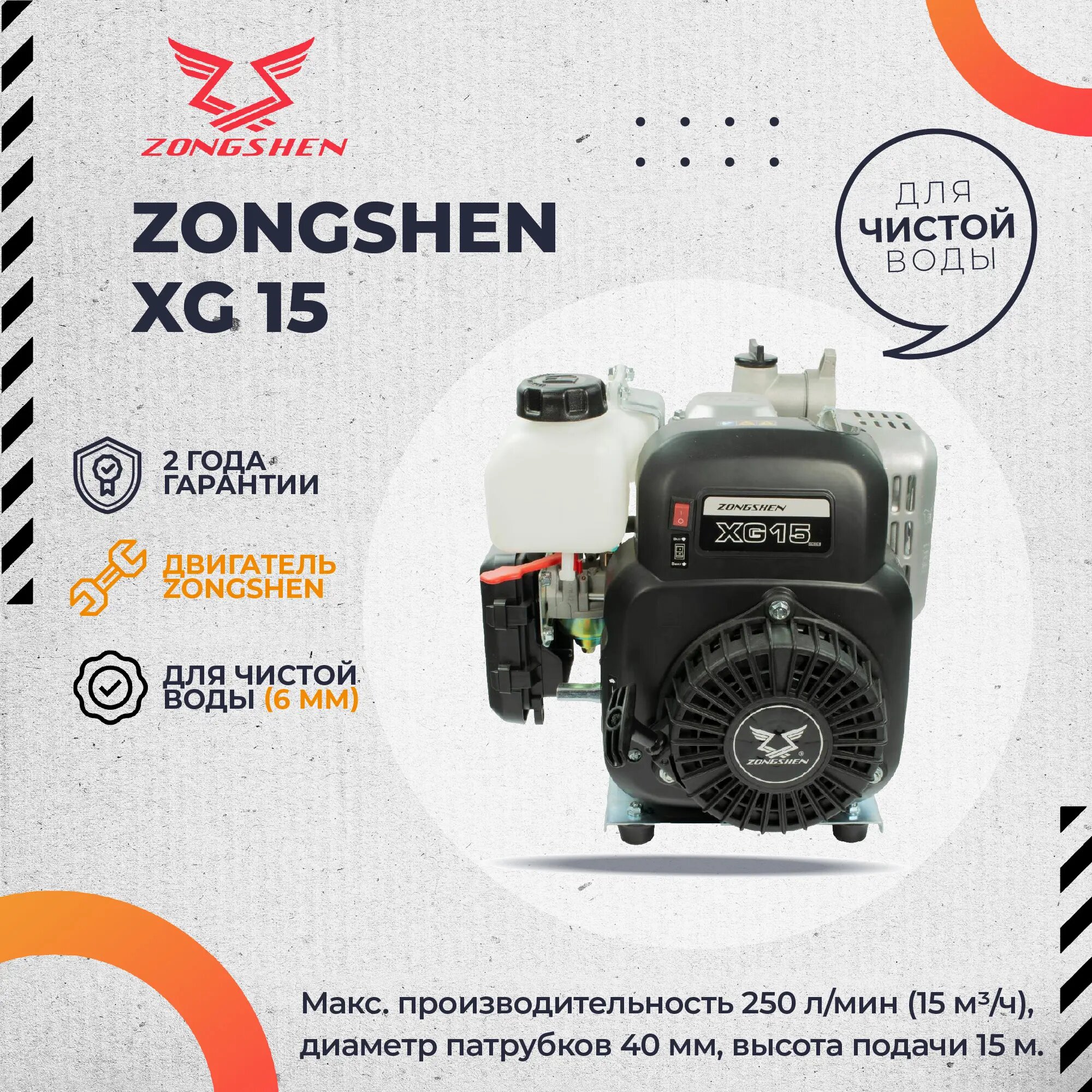 ZONGSHEN Мотопомпа бензиновая ZONGSHEN XG 15