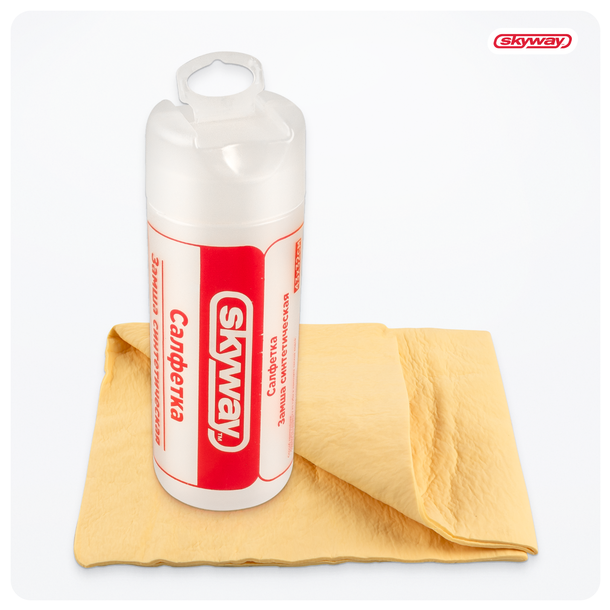 Салфетка замша искусственная 64*43см SKYWAY большая в тубе, S03901002