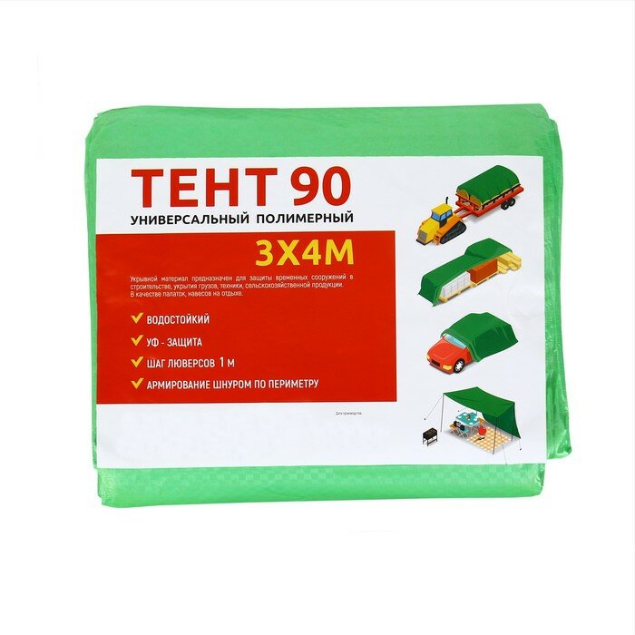 Тент защитный, 4 × 3 м, плотность 90 г/м², люверсы шаг 1 м, тарпаулин, УФ, светло-зелёный