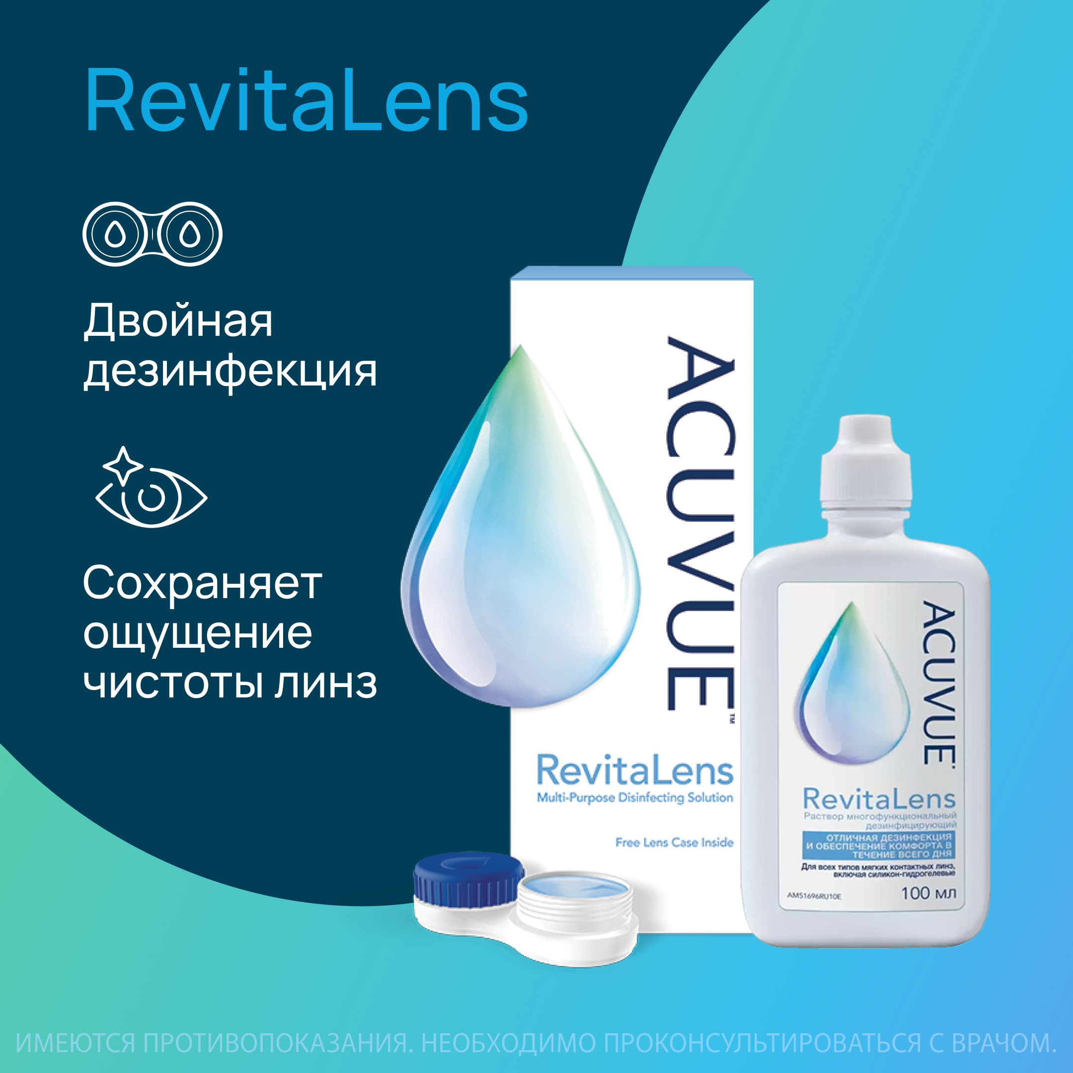Многоцелевой раствор для контактных линз ACUVUE Revitalens 100 мл, с контейнером для линз