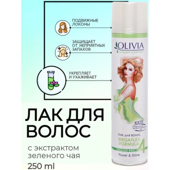 Лак для волос сильной фиксации серии «Olivia» с экстрактом зеленого чая, 250 мл