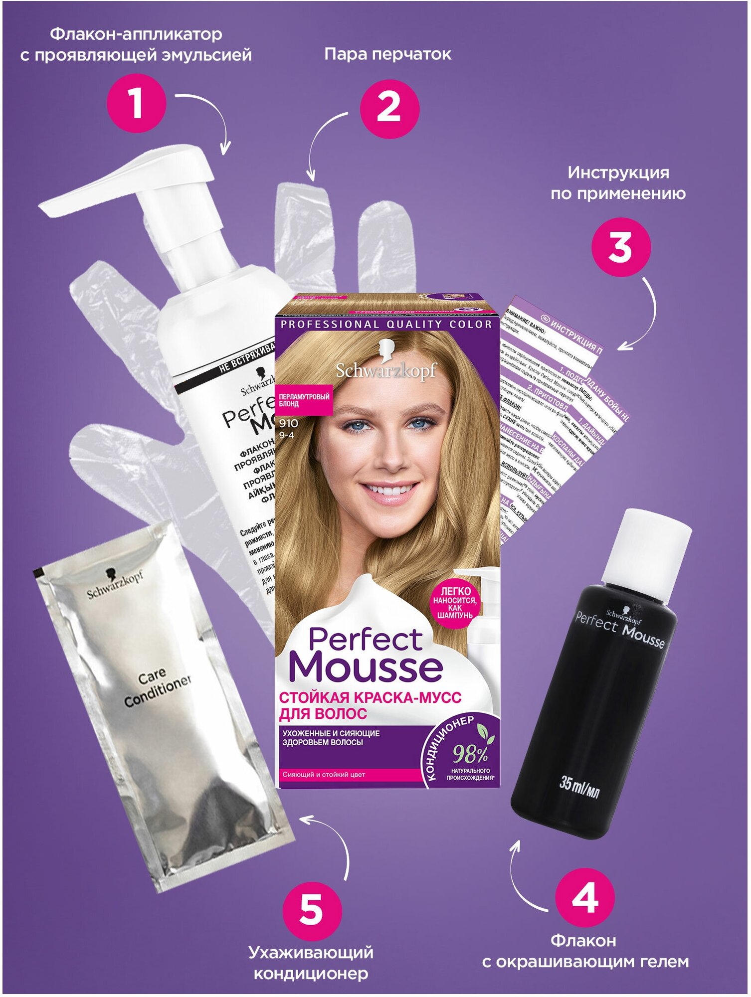 СохранитьSchwarzkopf краска-мусс для волос Perfect Mousse, оттенок Перламутровый Блонд 910, 93мл интересное: