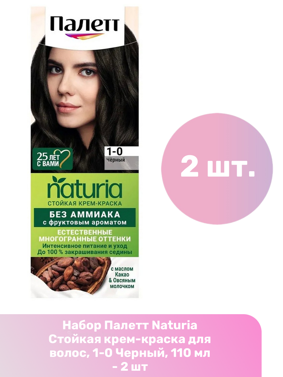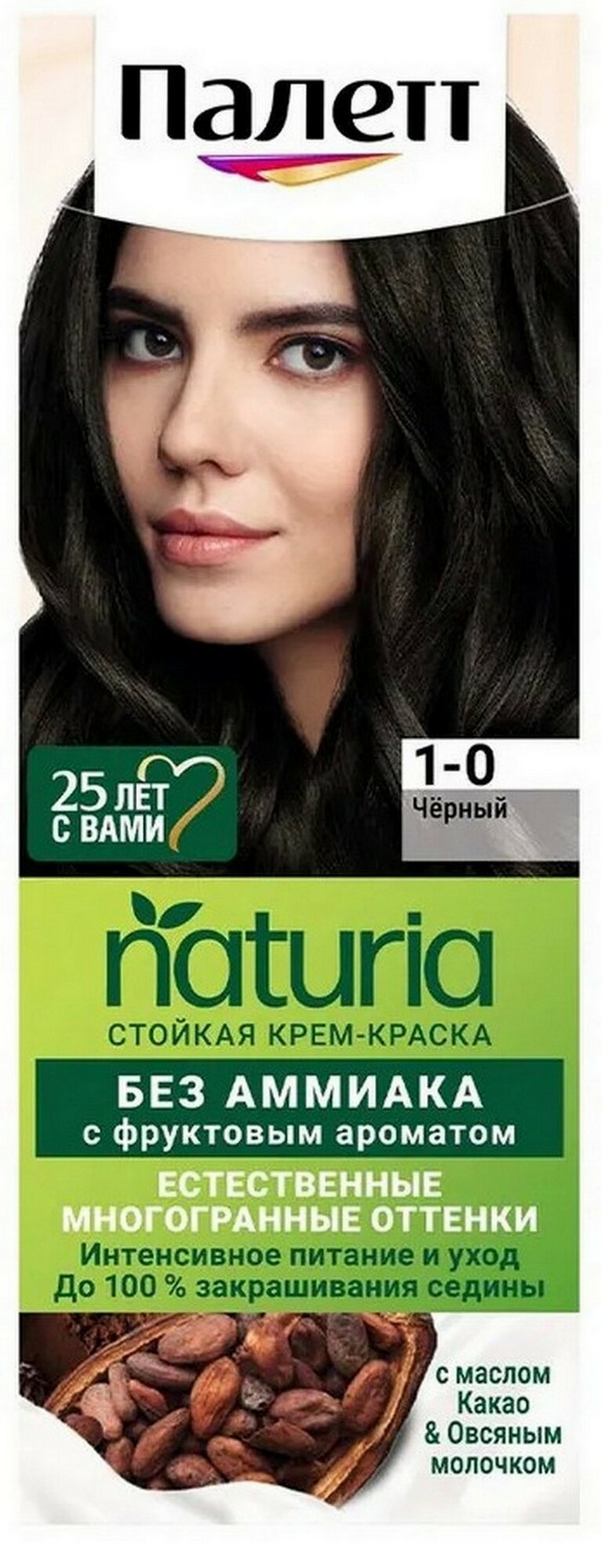 Палетт Naturia Стойкая крем-краска для волос, 1-0 Черный, 110 мл - 2 шт