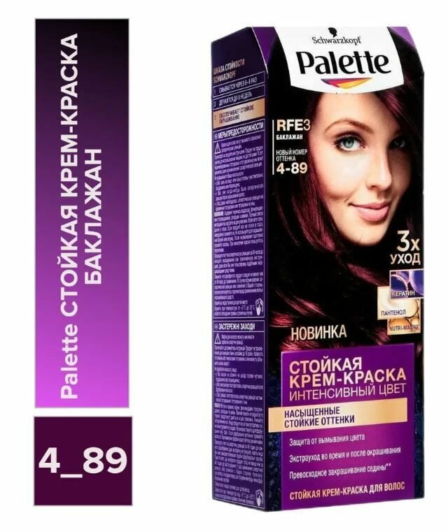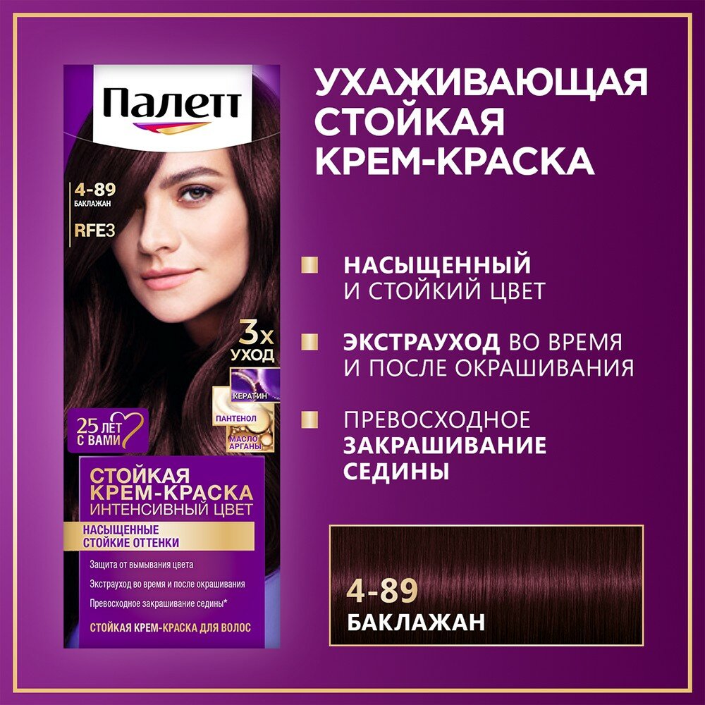 Палетт Стойкая крем-краска Интенсивный цвет, RFE3 4-89 Баклажан, 110 мл - 3 шт