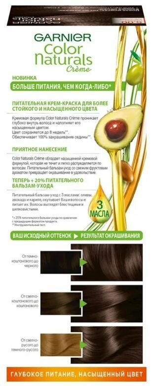 Крем-краска для волос Garnier Color Naturals с 3 маслами, тон 3.23, Темный шоколад