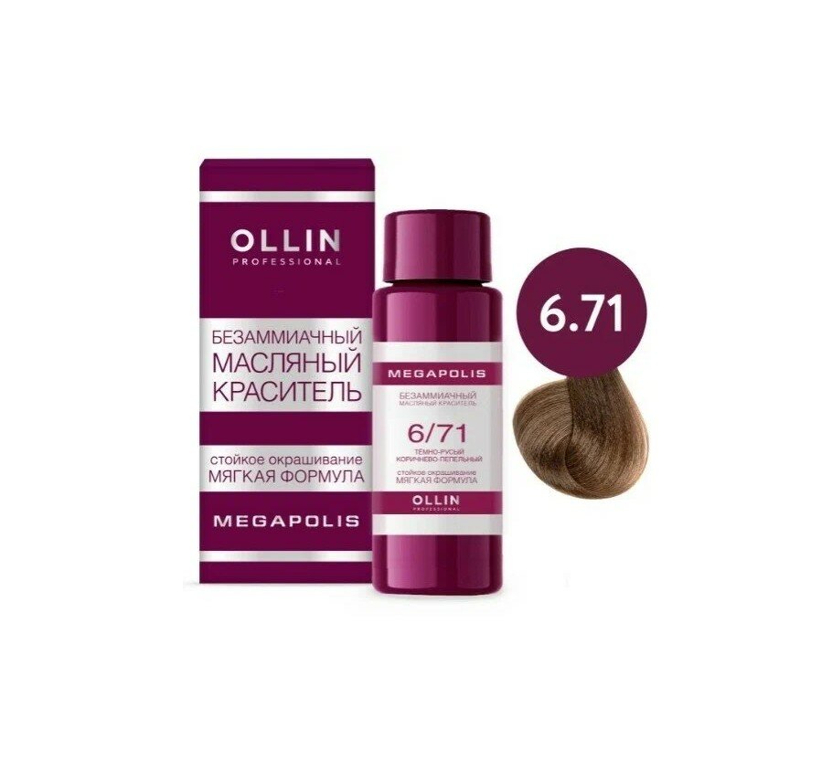 Купить Ollin Megapolis масляная краска для волос 6/71 темно-русый коричнево-пепельный 50мл