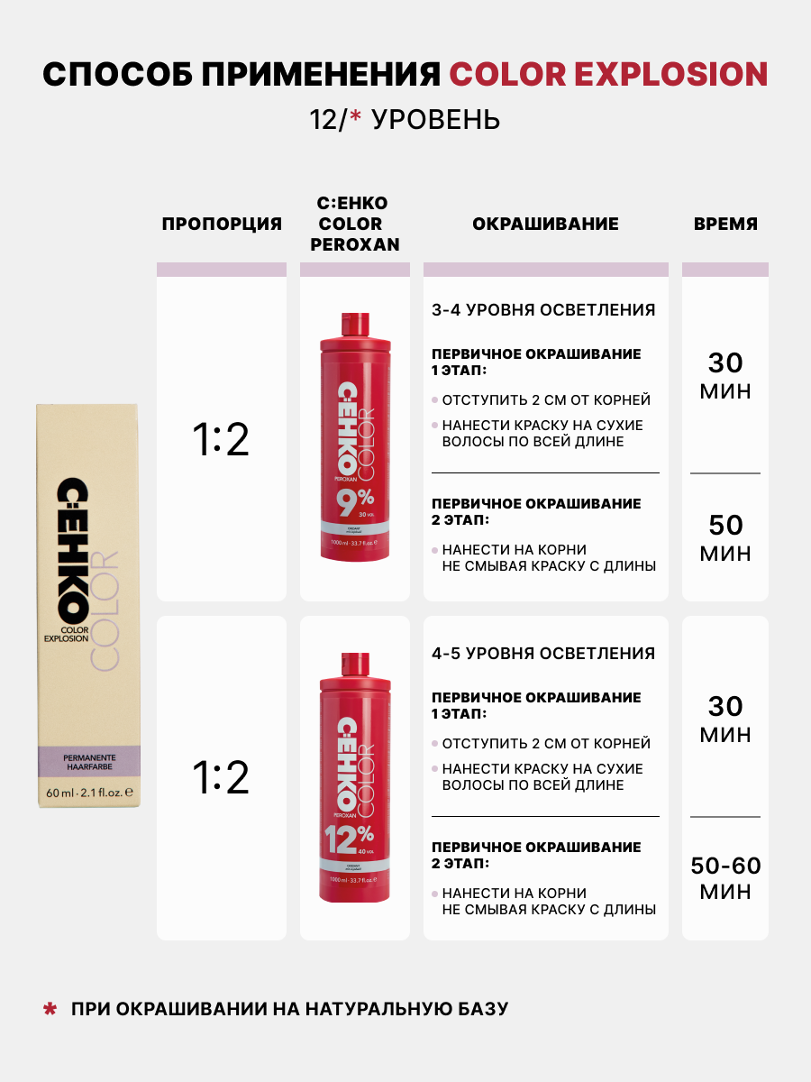 Профессиональная краска для волос 12/82 Фиолетовый пепельный платиновый блондин, осветлитель, для блонда, холодный, стойкая, перманентная, 60 мл, C:EHKO COLOR EXPLOSION